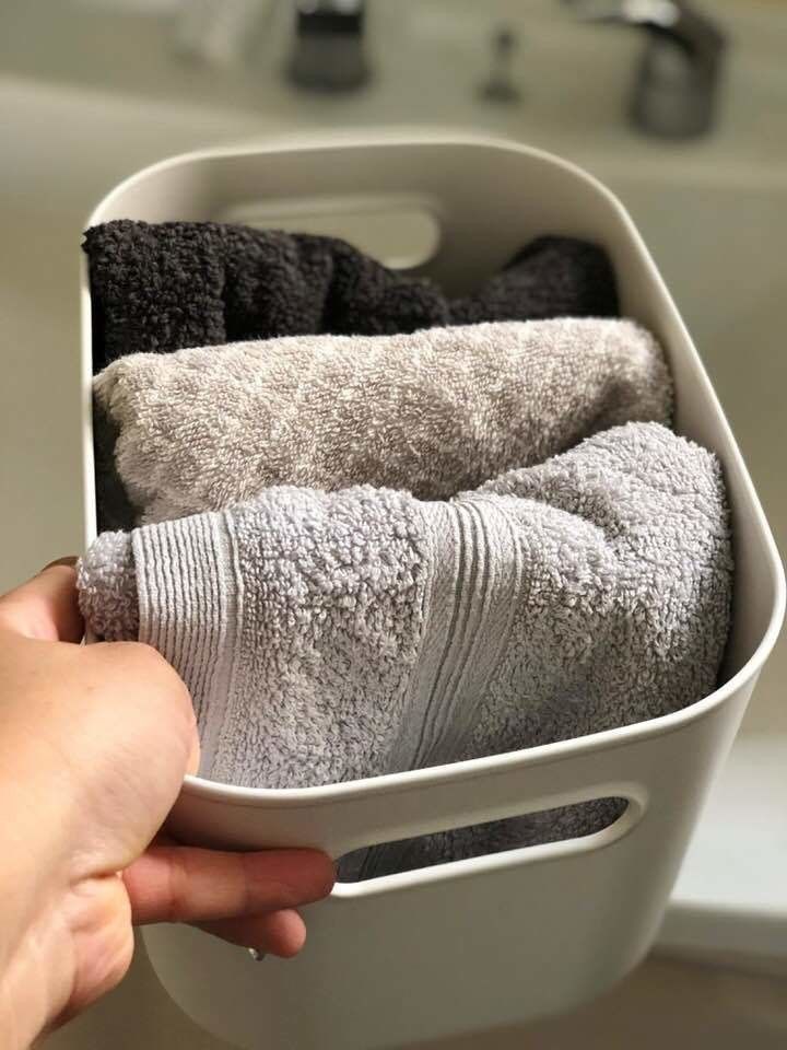 フェイスタオルはこのケース1個まで!などと決めることで“捨て時”を認識しやすくなります。もちろんカットしてお掃除に使用するのも◎