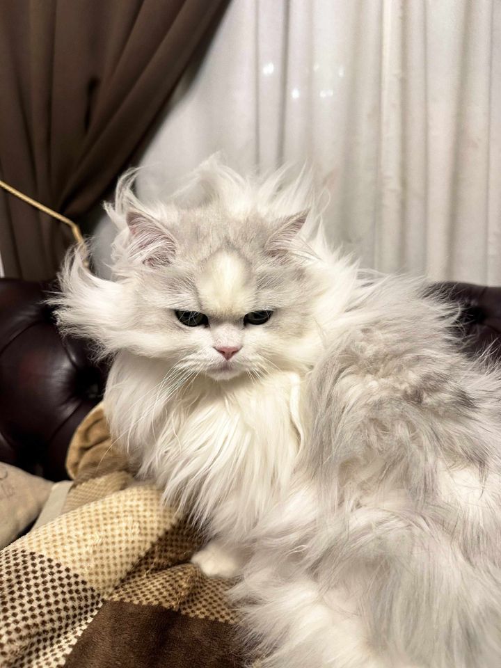 どうやらこの日はエアコンの下で寝ていたところ、トレードマークでもあるその毛並みに、寝癖がびっしりとついてしまったようです!重力に逆らうように立ち上がった毛並みが、なんとも芸術的ですね。