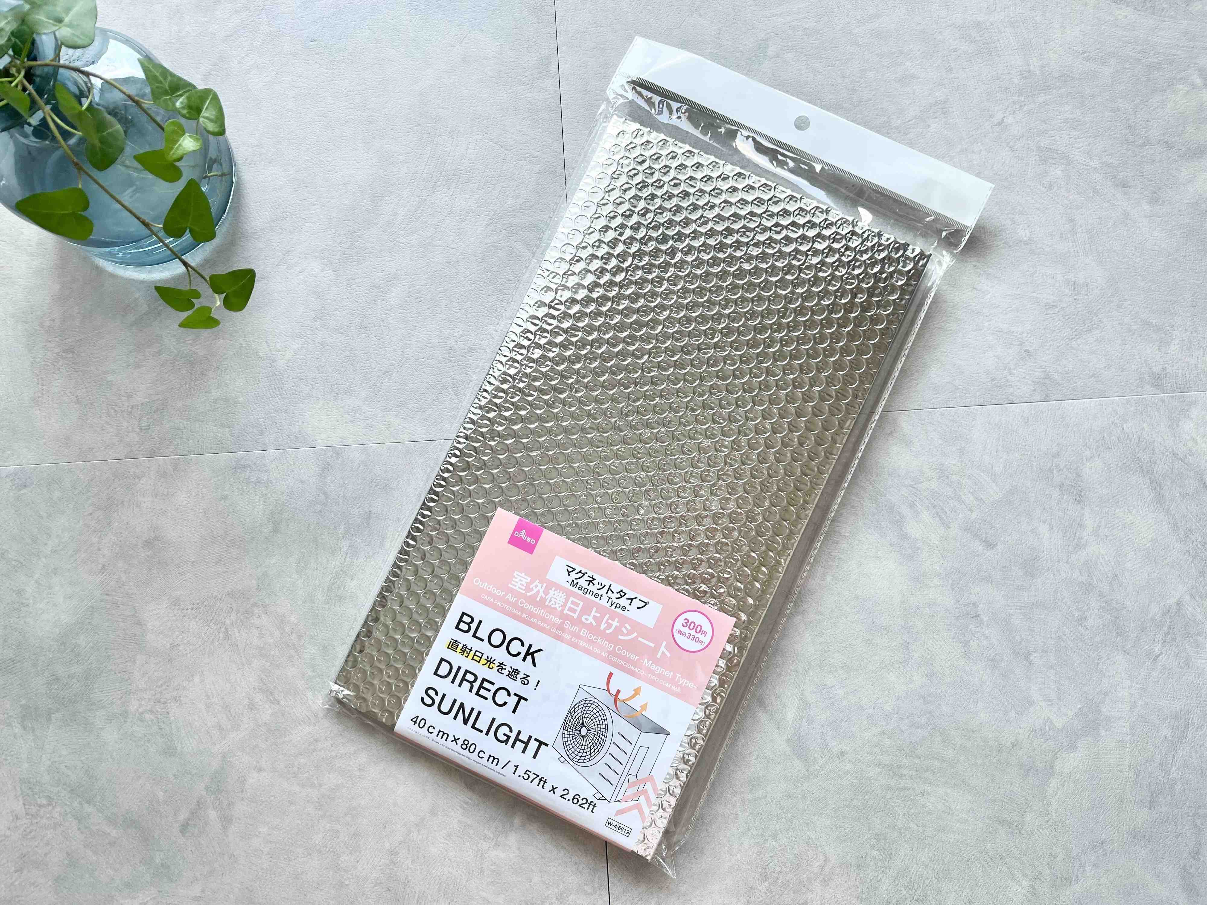 ご紹介するのは、ダイソーの「エアコン室外機日よけカバー(マグネットタイプ)」。エアコンの室外機が熱くなりすぎると、エアコンが効きにくくなるというのはご存知でしょうか?その熱くなりすぎる原因の1つは、熱い直射日光が室外機にたくさん当たるからだそうです。
