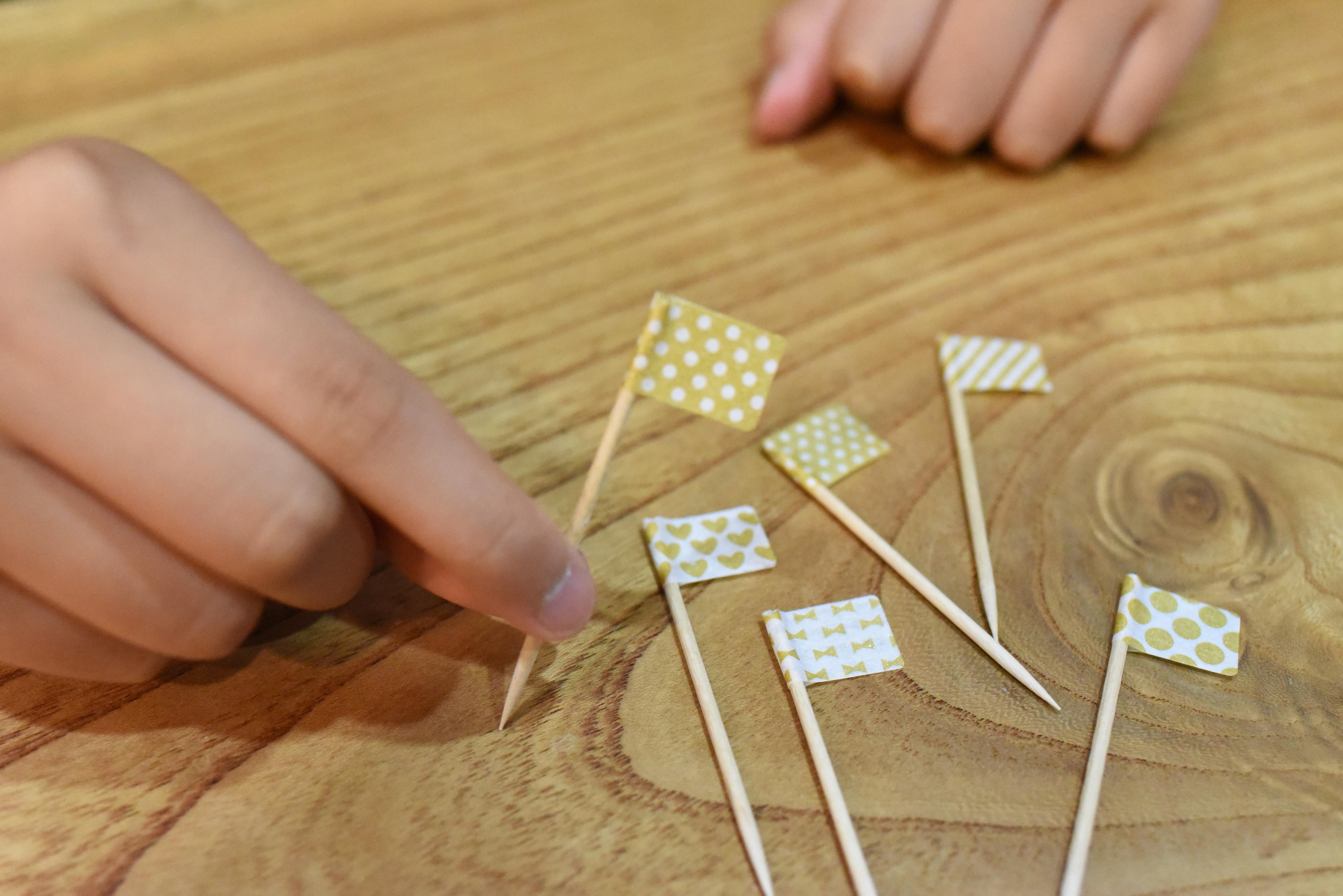 長さが決まっているので、子供でも同じサイズの旗ピックを簡単に作ることができます。