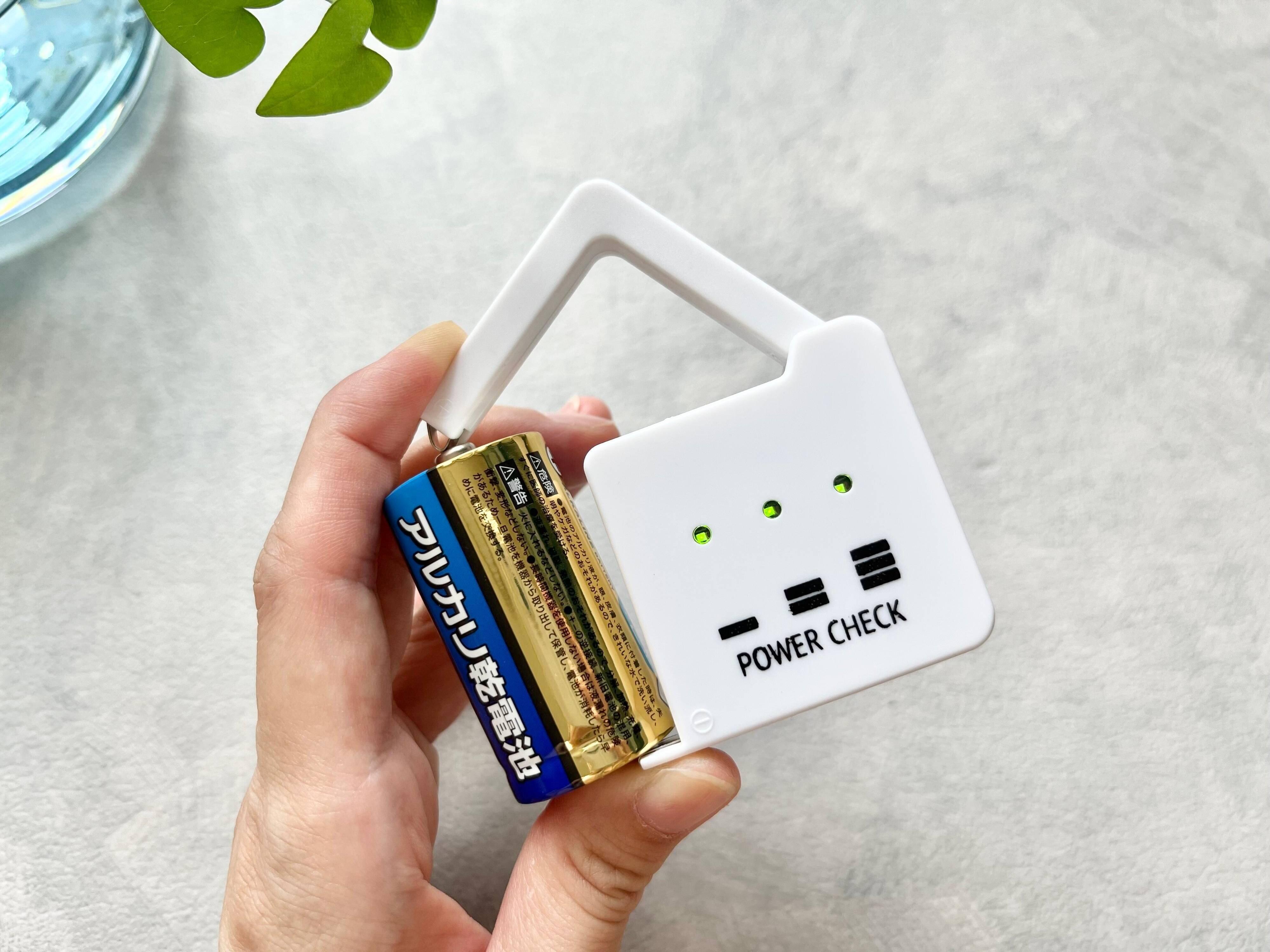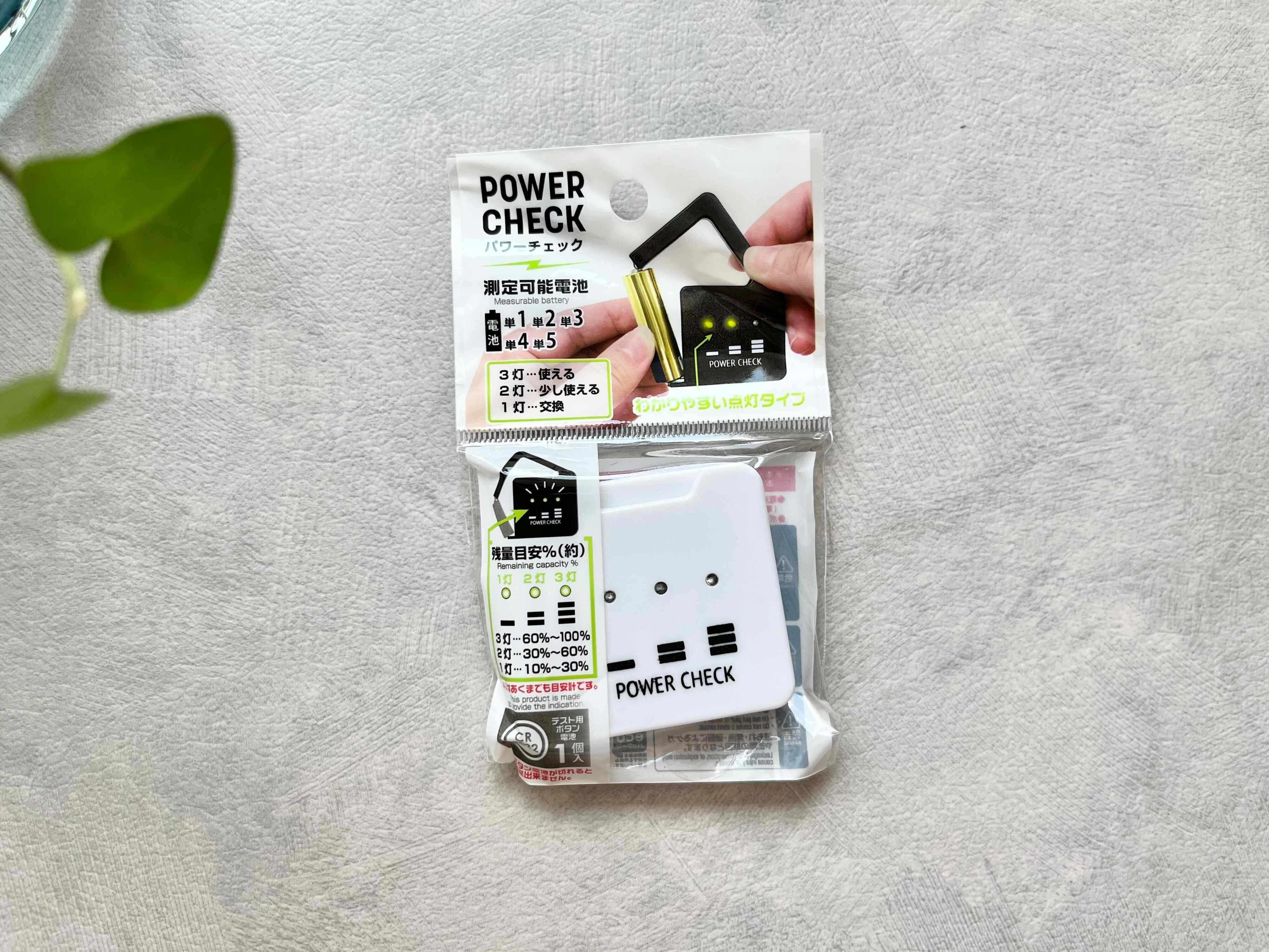 そんなときに役立つのが、セリアの「パワーチェック」!これを使えば電池の残量を手軽に測定することができるんですよ。