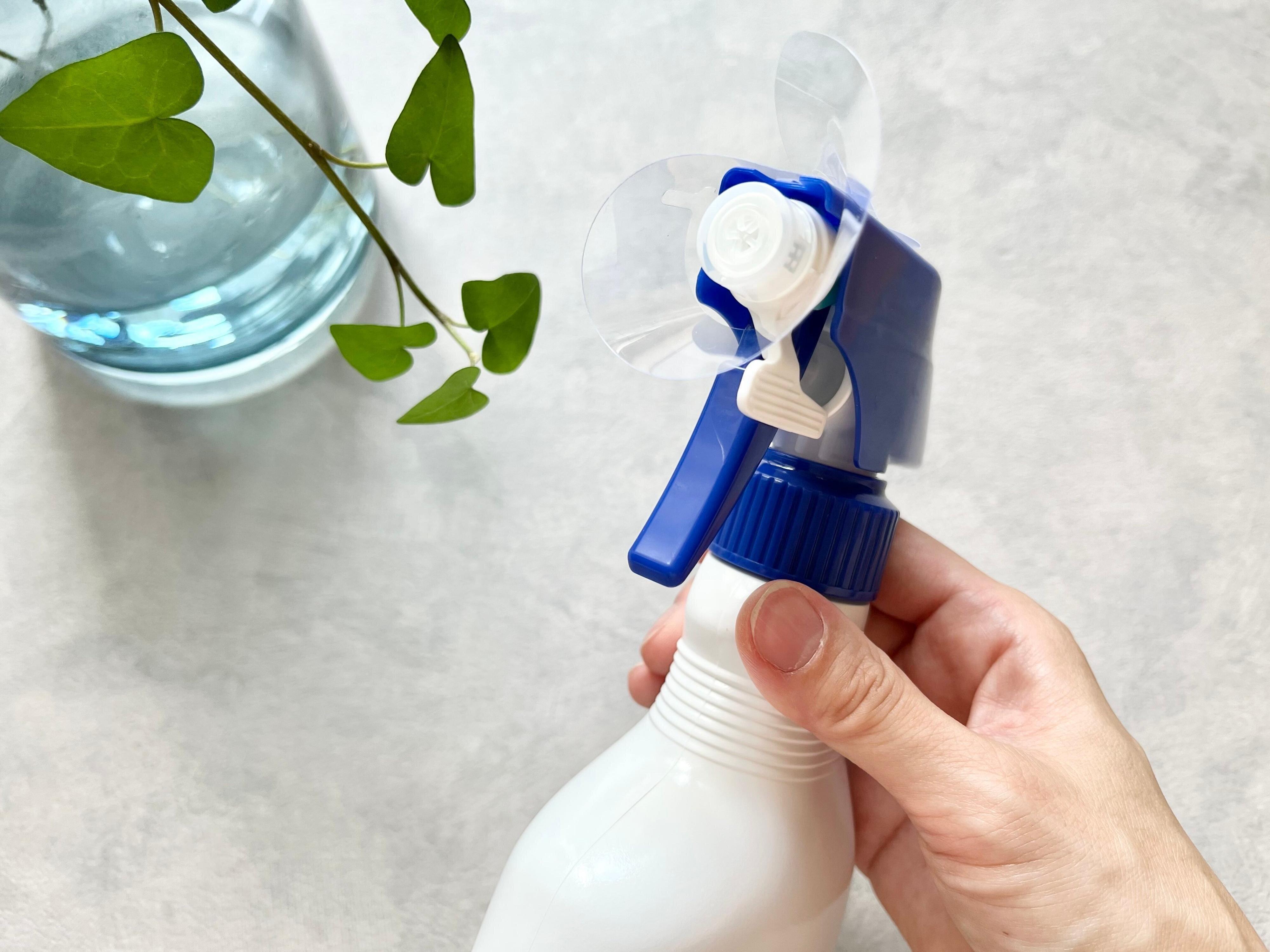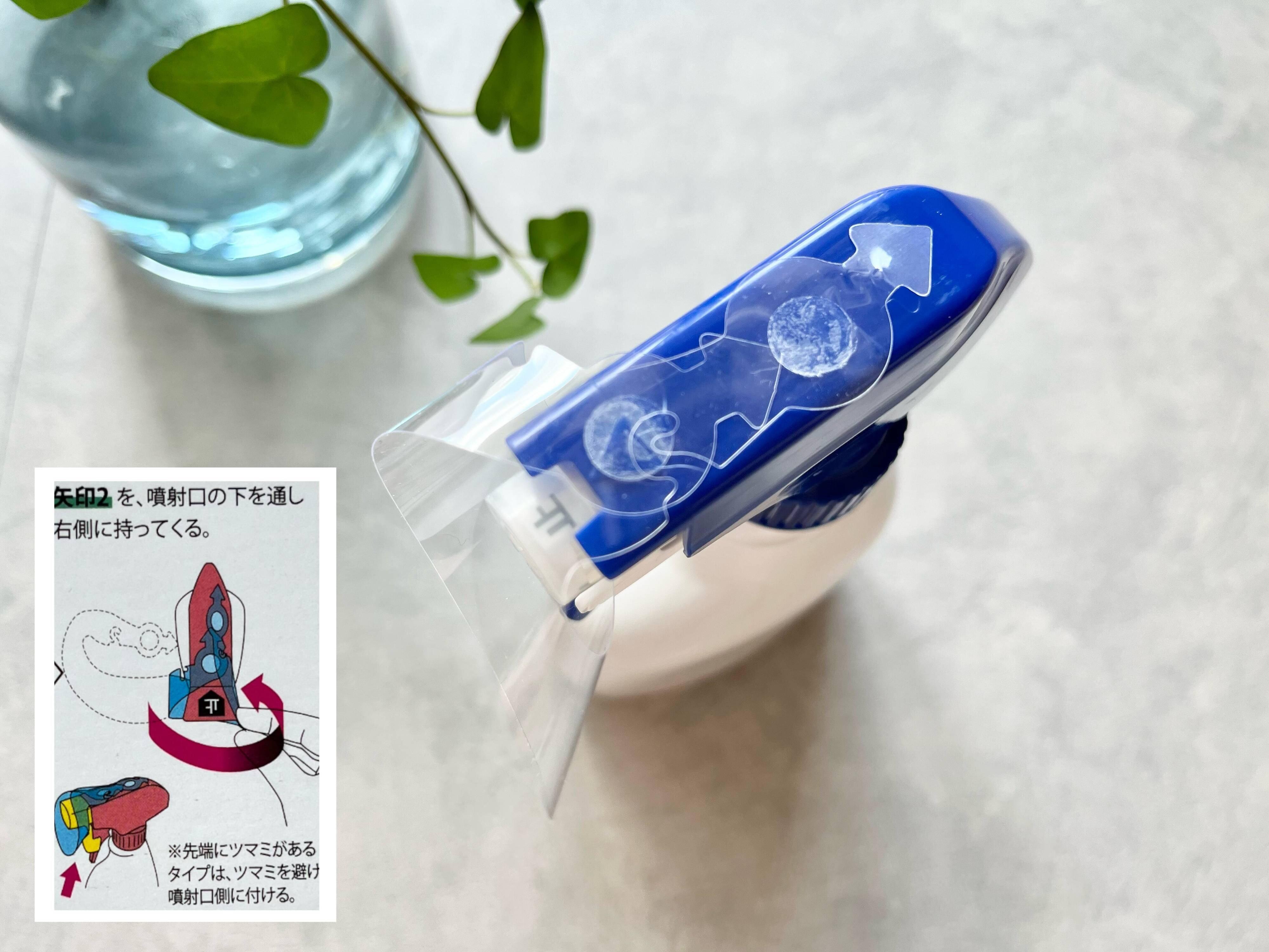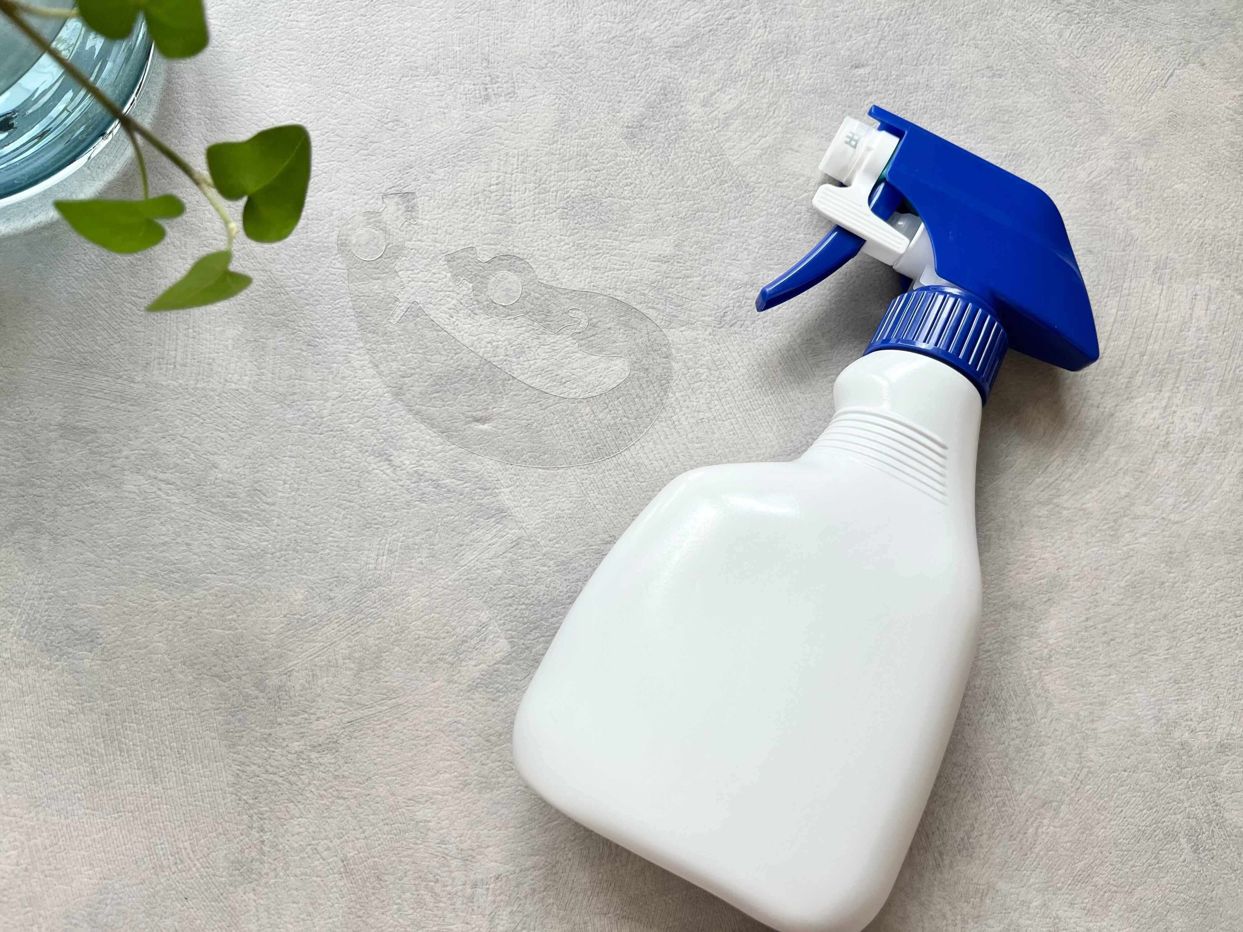 取り付け方は、まずスプレー洗剤のボトルを用意し、スプレーから液体が出ない状態にしてから噴射口の周りの汚れや水分を拭き取ります。