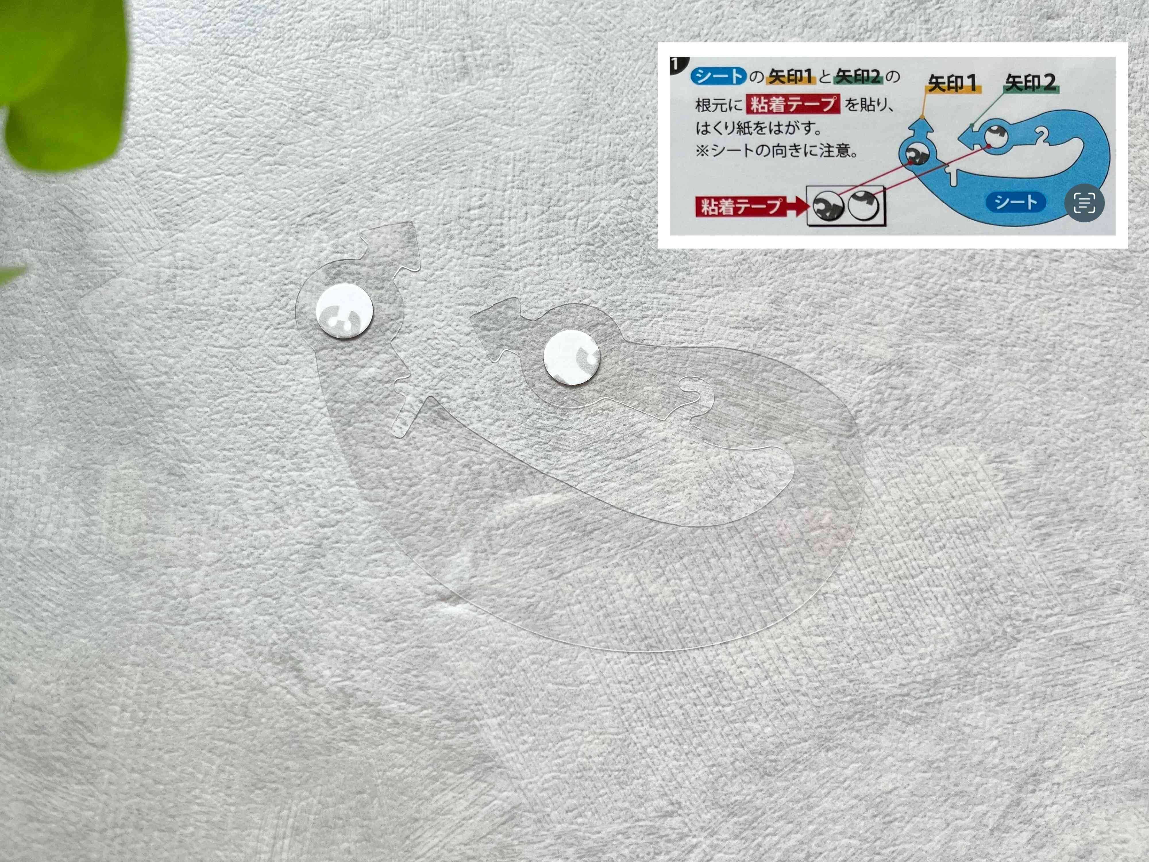 そして、シートを裏返して矢印1をイラストの方向・位置に貼ります。