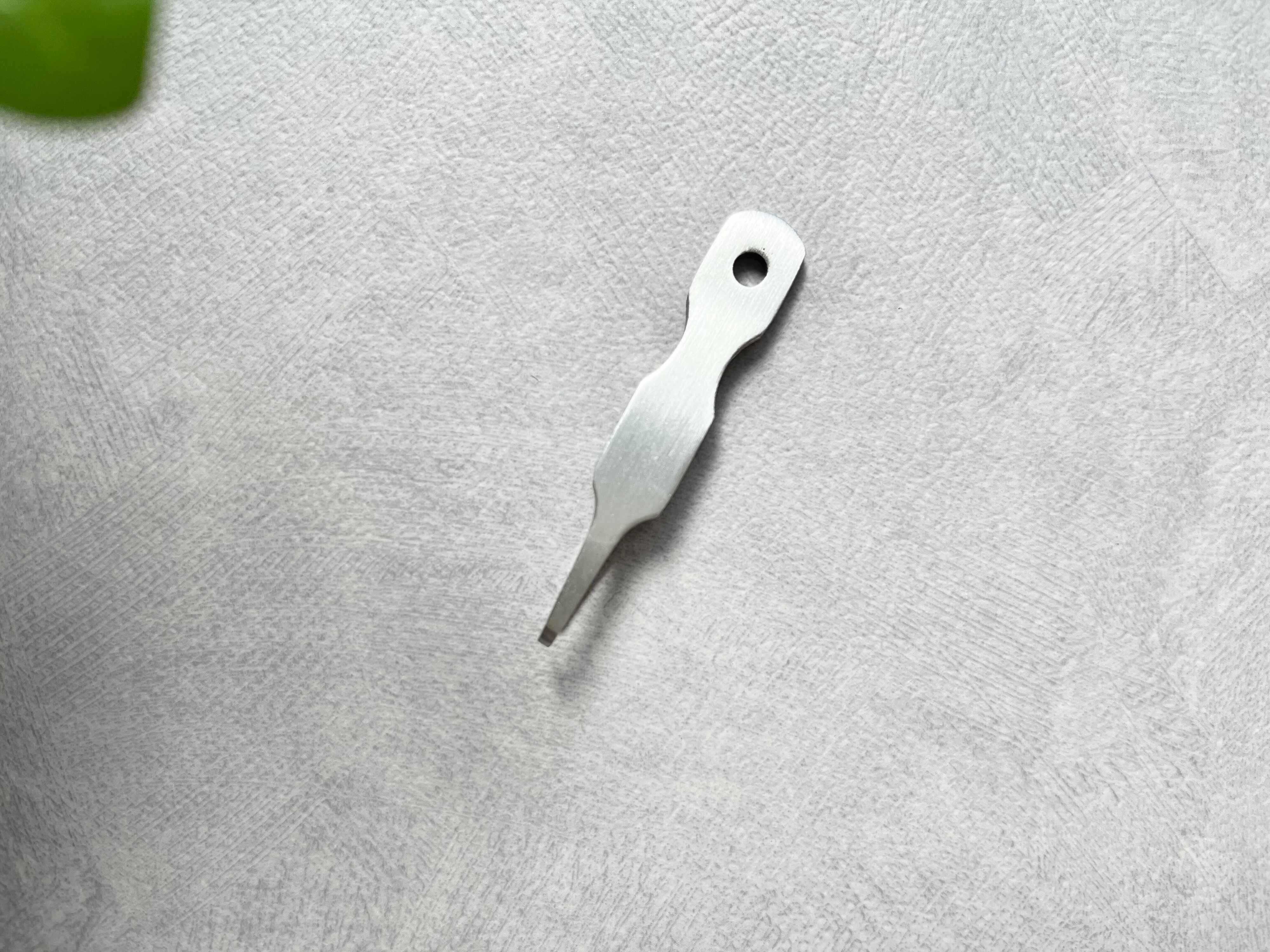 全長は約5.9cm。スチールで作られた、見た目はまるで小さなピンセットのようなデザインをしています。