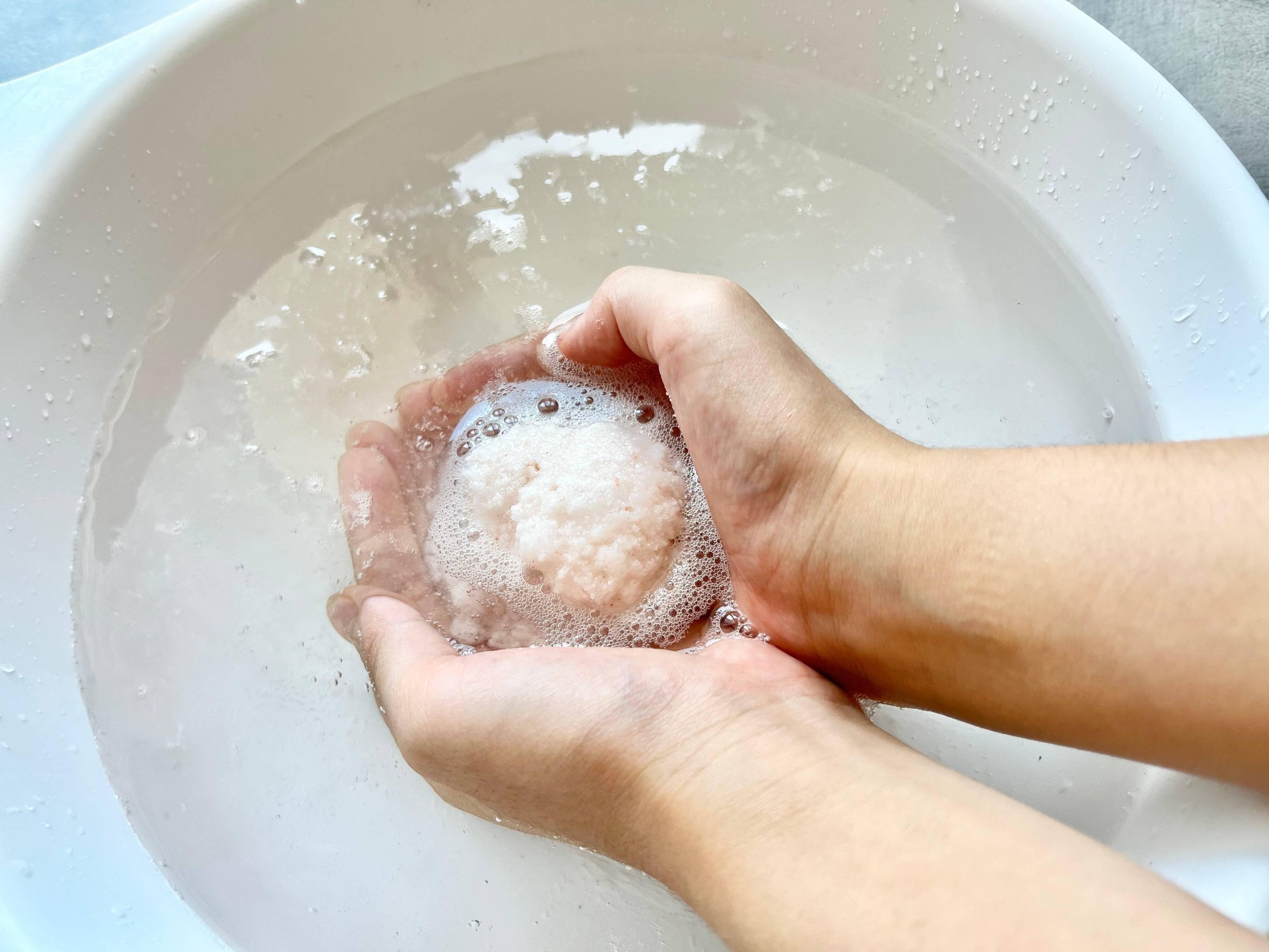 お湯の温度を変えると泡の出方が変わるので、冷たい水とお湯とでの違いを比べてみるのも楽しいですよ!