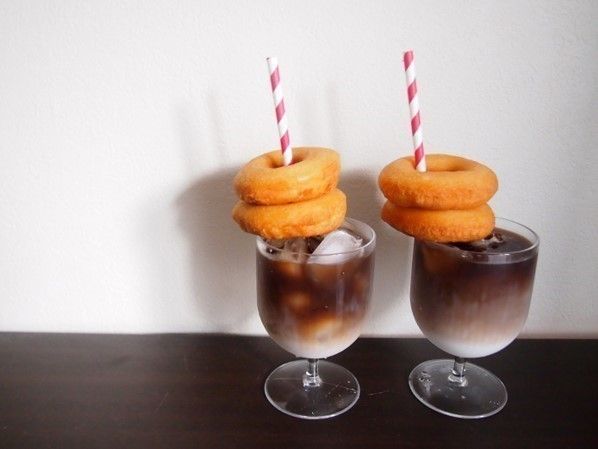 ツートンコーヒーにストローを挿して、ドーナッツをのせる。お洒落なカフェがよくやっているこのスタイル。インスタでもよく見かけますよね。簡単にまねっこできますよ。