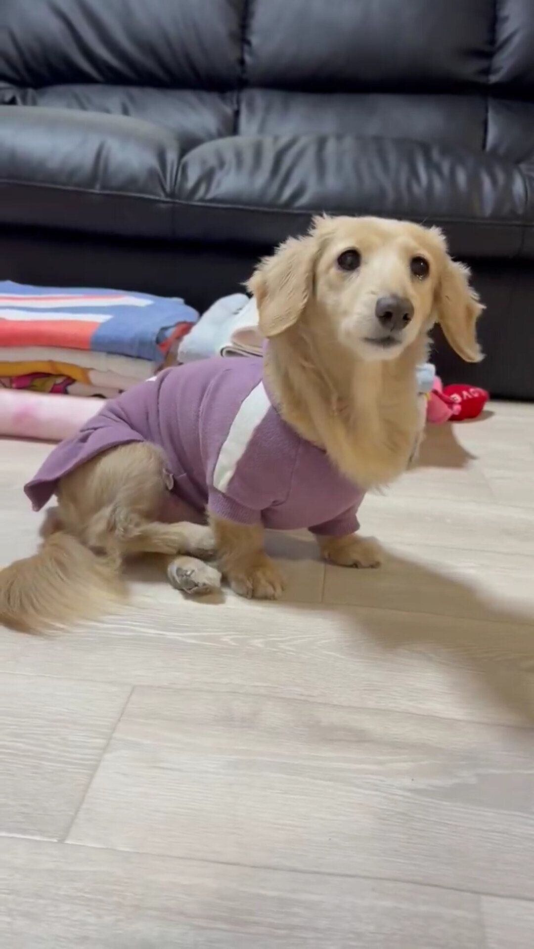 その笑い声にハッとした来優ちゃん。飼い主さんの方を見ますが、少し経つと再び元の方向を見てぼんやり。