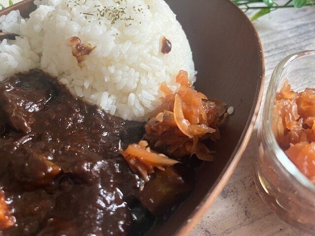 カレーに欠かせないものと言えば、福神漬けやらっきょうなどのトッピング。少しのせるだけでも気分が上がりますし、味も格段に上がったように感じられて、更に満足度も高まります。