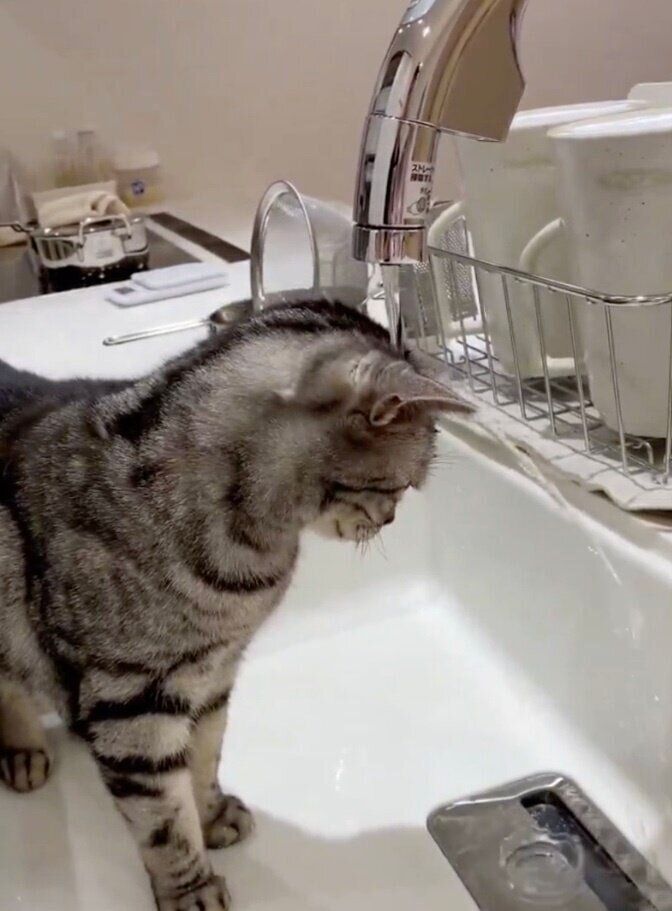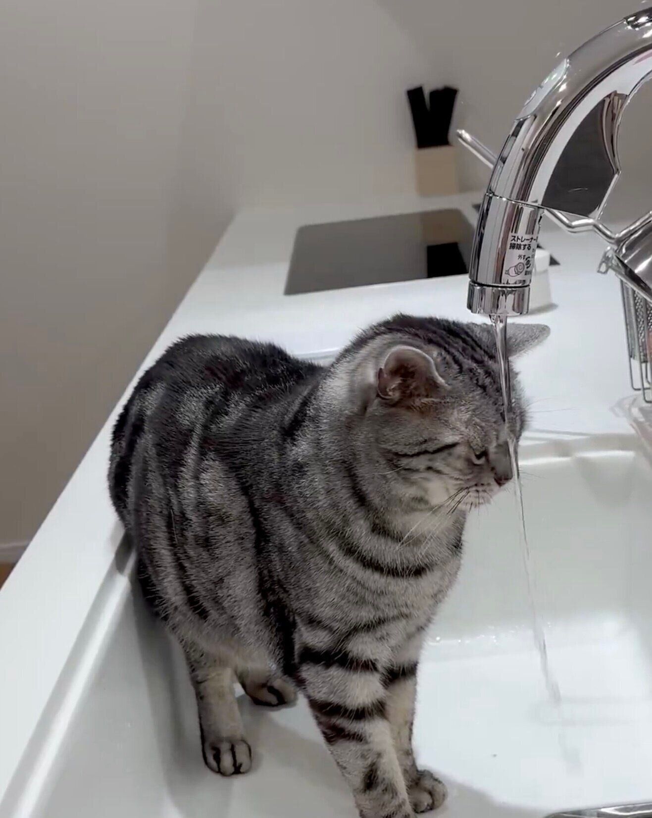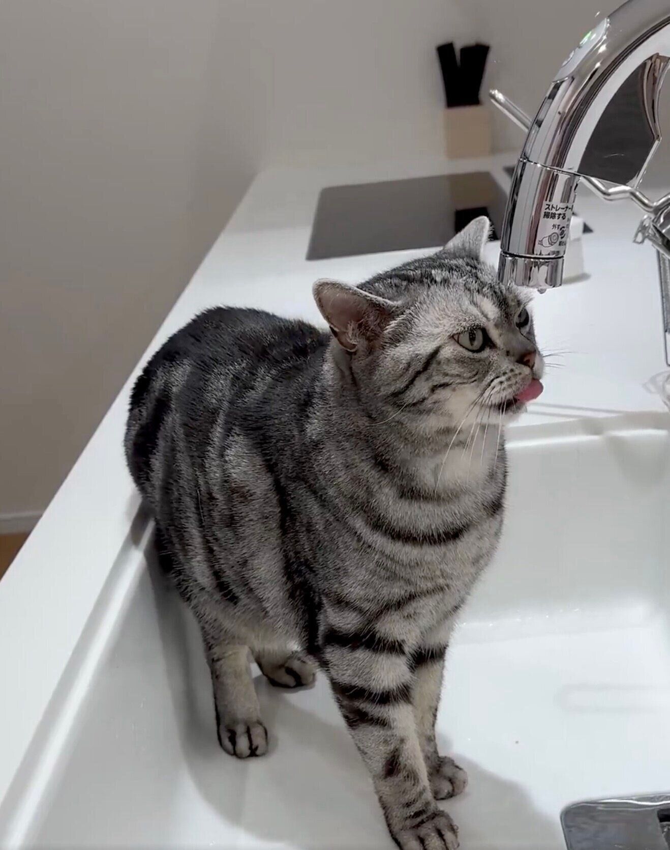 投稿したのは、アメリカンショートヘアの佐助くんが水を飲んでいるときの動画。