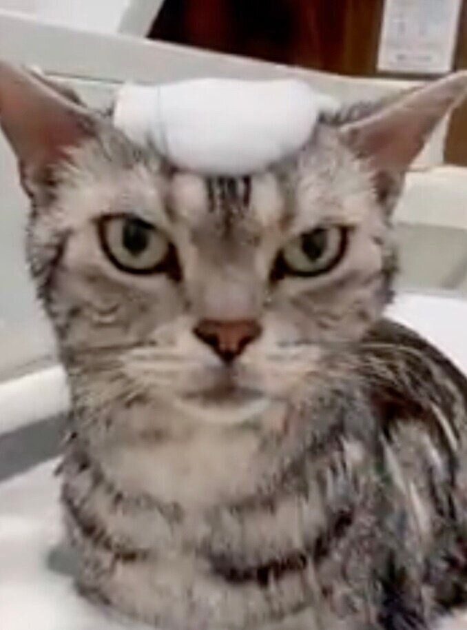 「かわいいけど、シンクに入ってずぶ濡れ……苦笑いです」