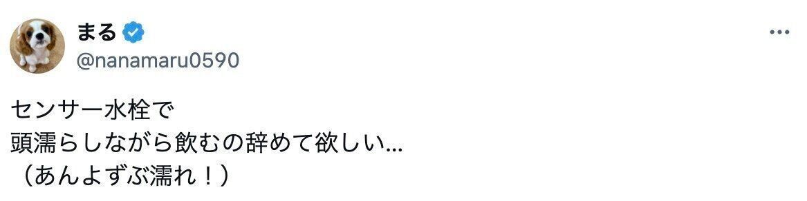 まるさん(@nanamaru0590)の投稿が話題になっています。投稿したのは、愛猫の佐助くんが水を飲んでいるときの動画。タッチレス水栓を上手に使い、ビショ濡れになりながらも水を飲み続ける佐助くんの姿に、3.3万件のいいねが集まりました。