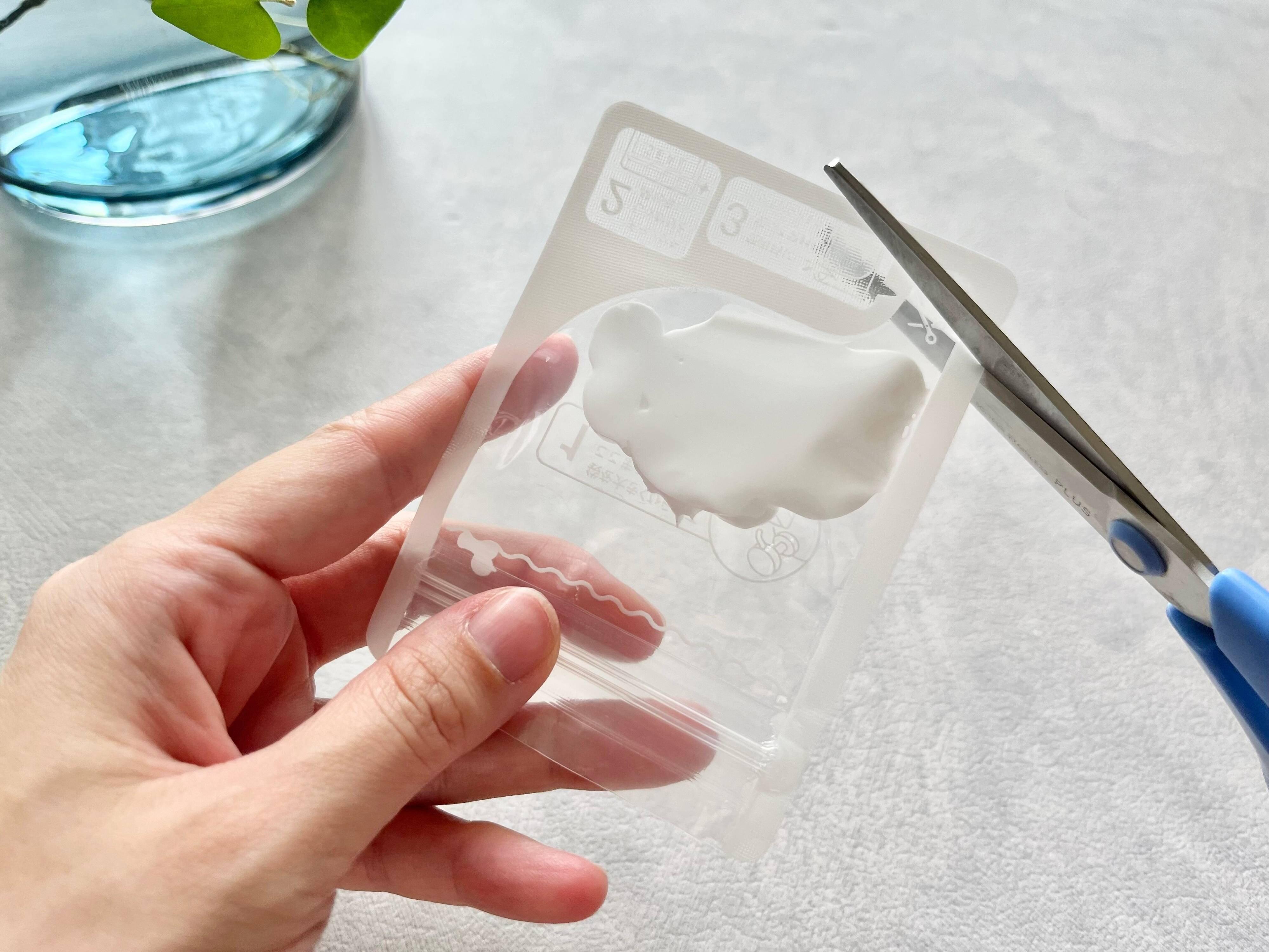 使う時は、パウチのチャックとは反対側にある出し口をカットして使います。