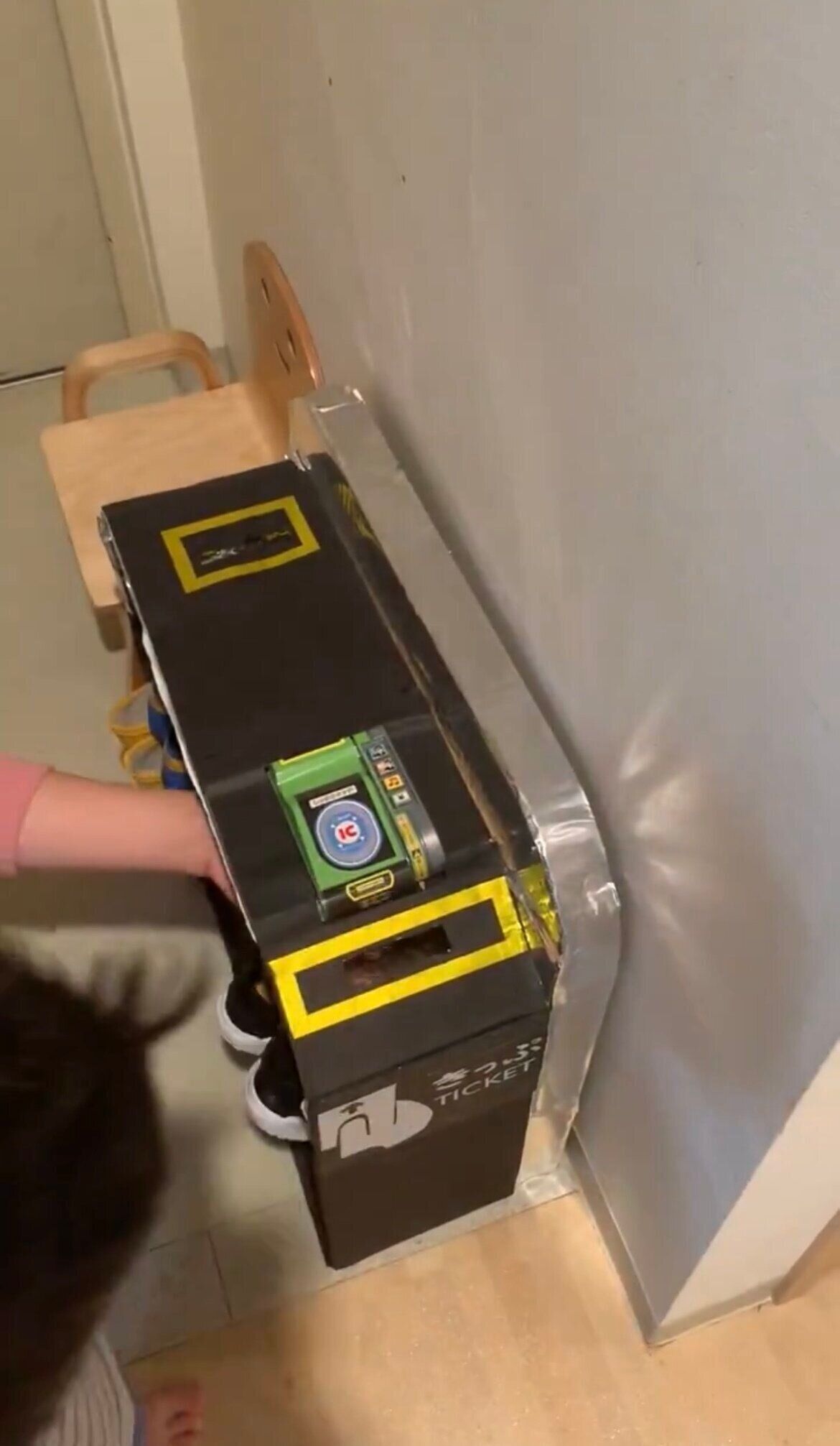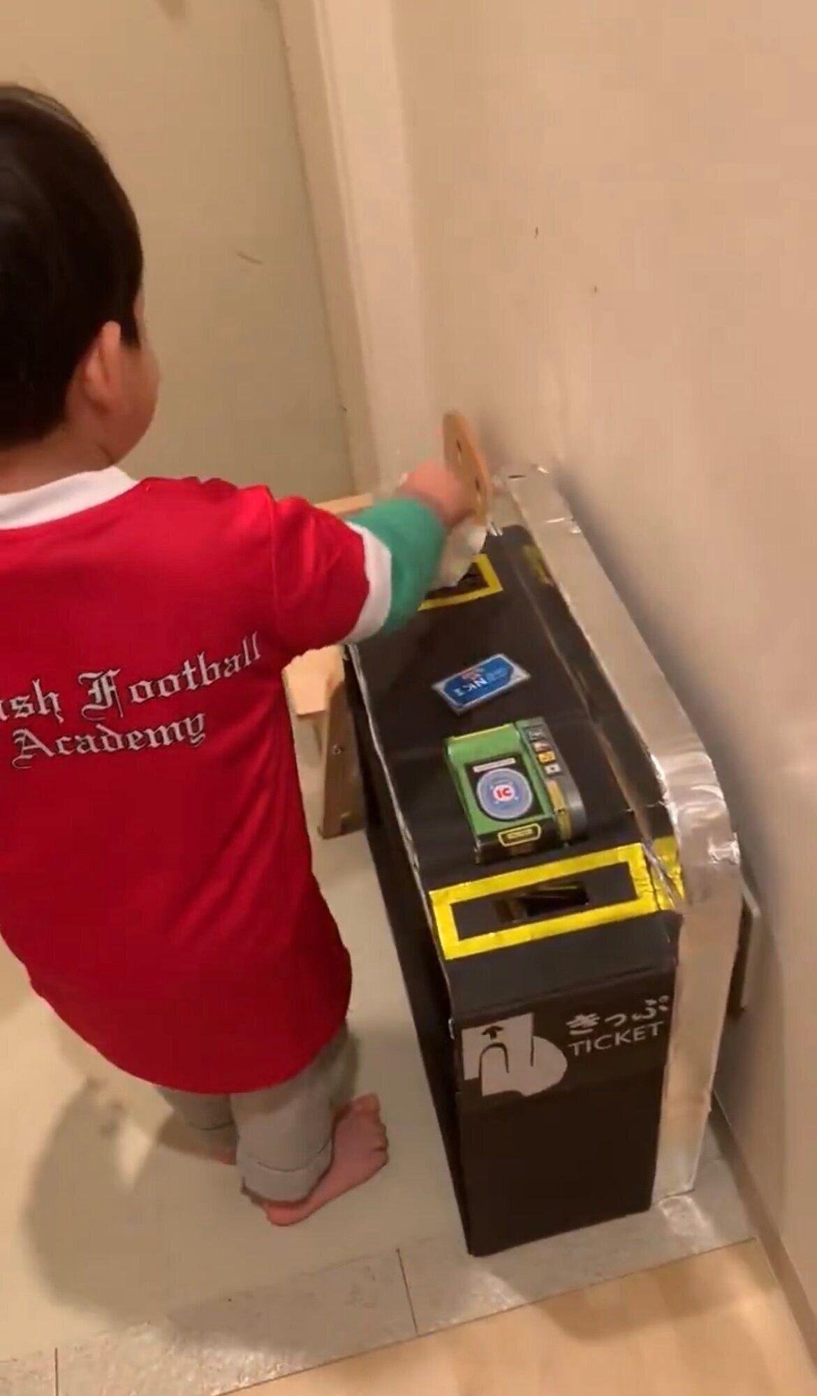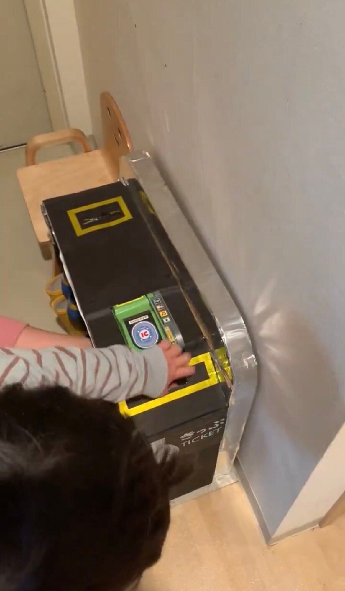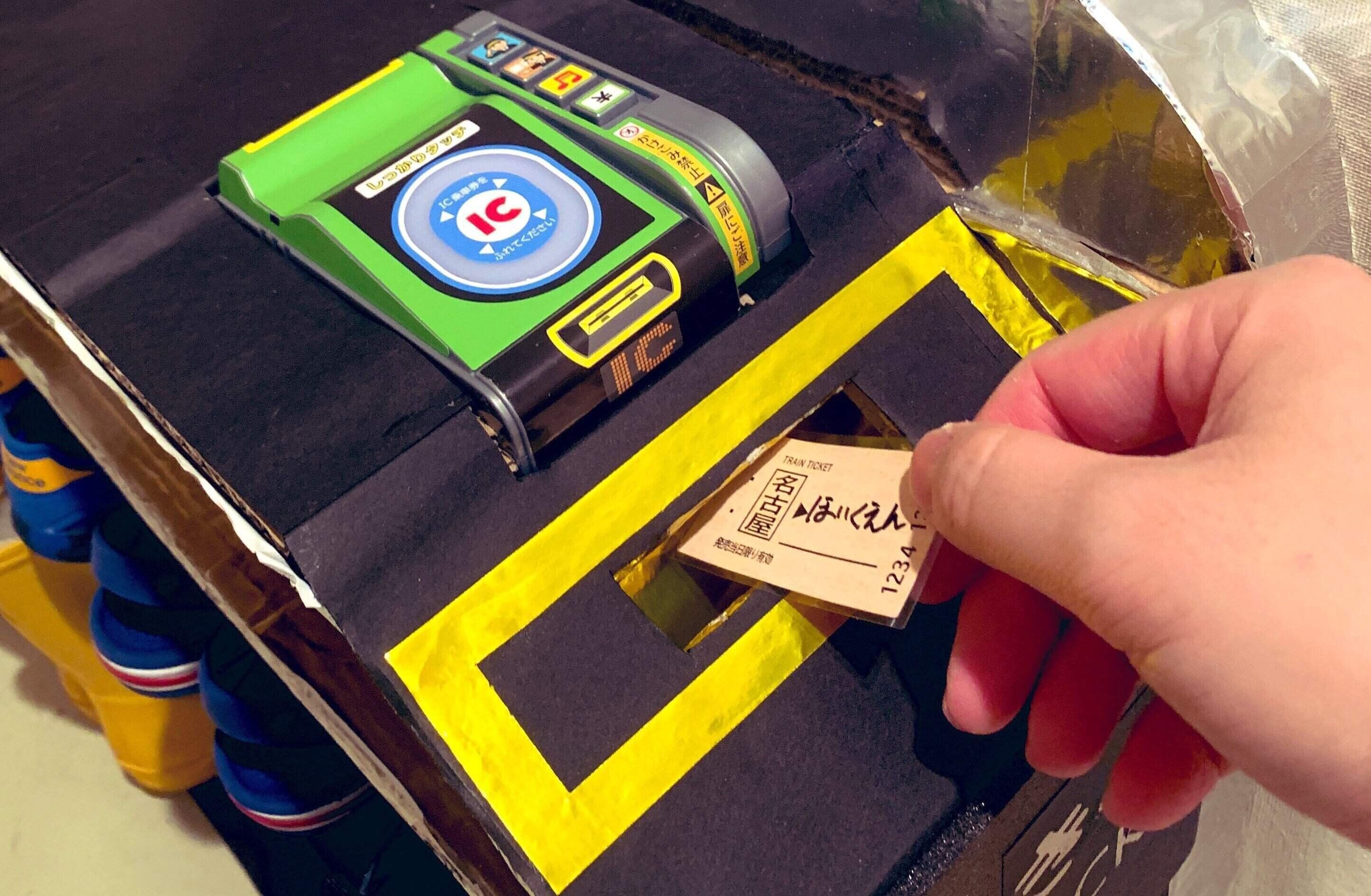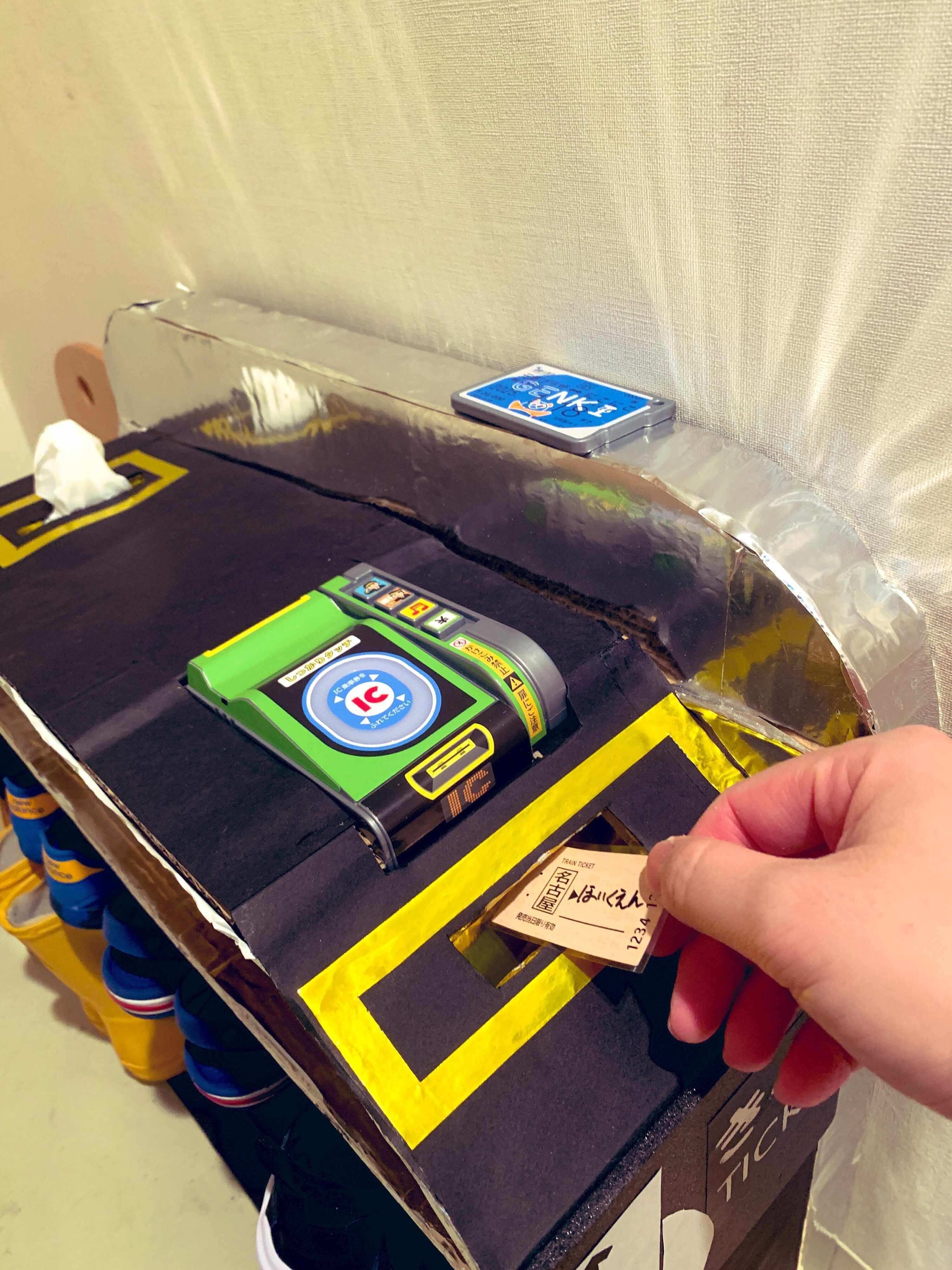投稿されたのは、撮影時3歳の息子のために、段ボールで作った改札です。