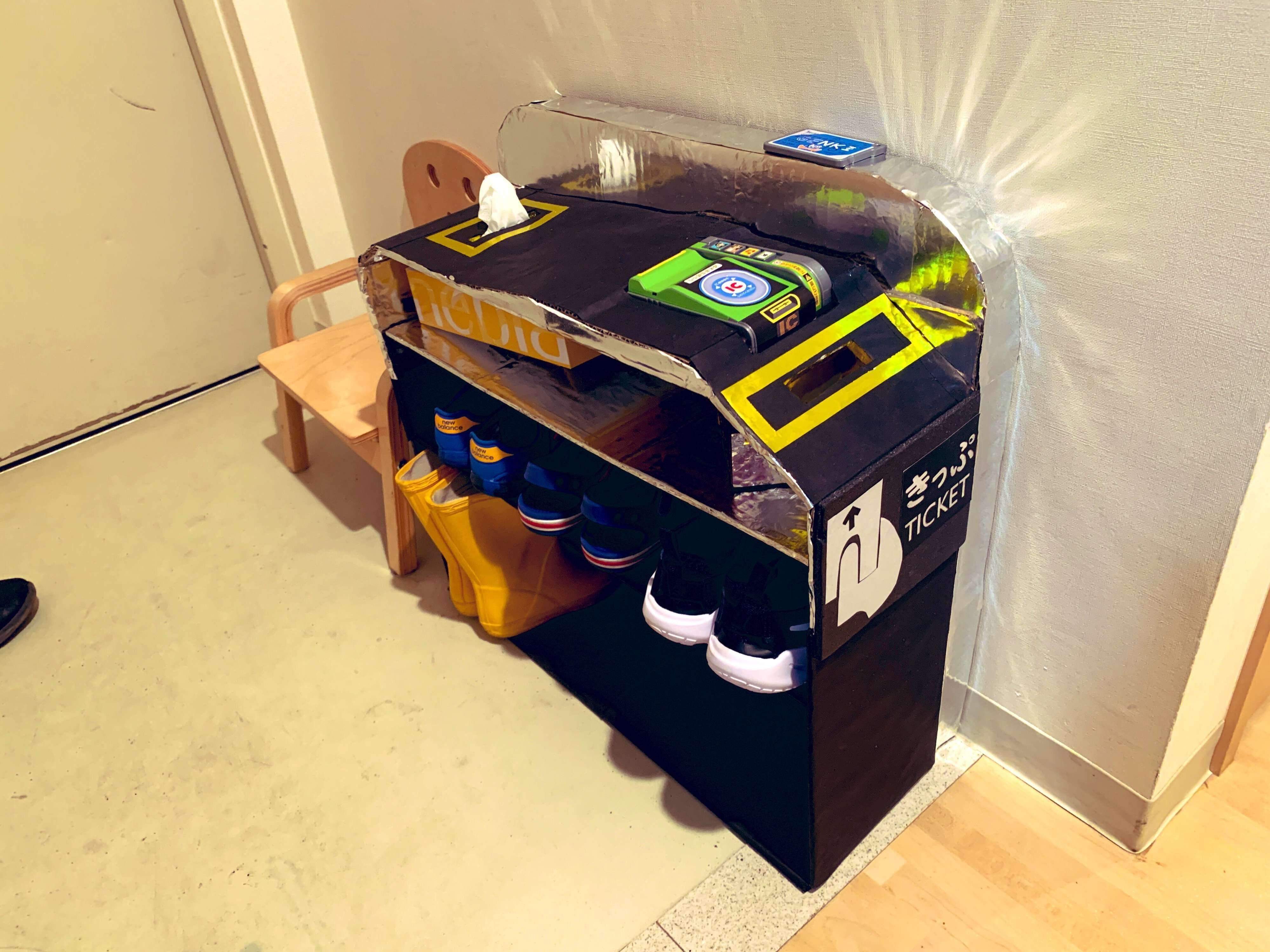 実はこの改札機は、息子さんの靴箱としても使えるようになっているそうです。