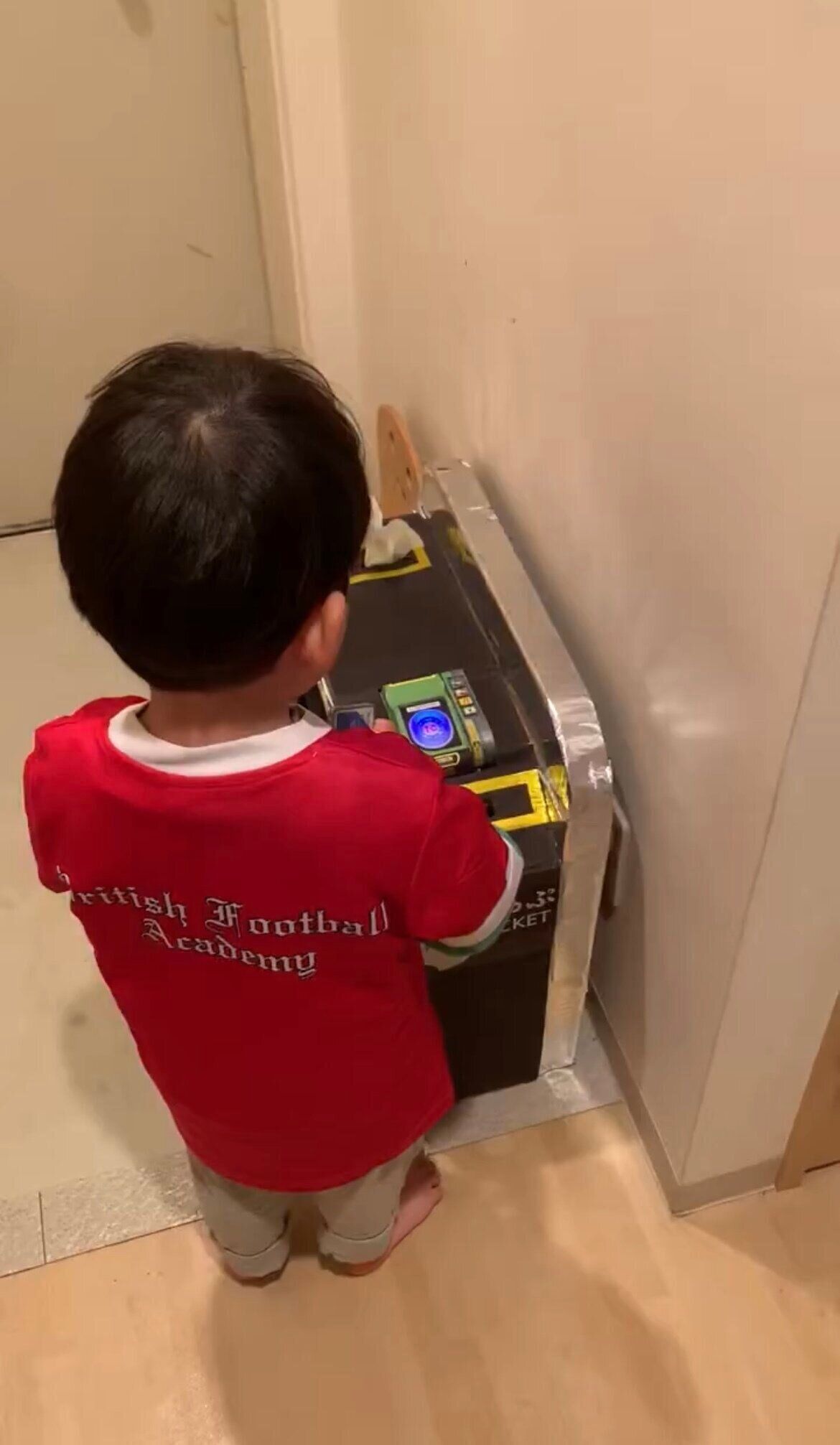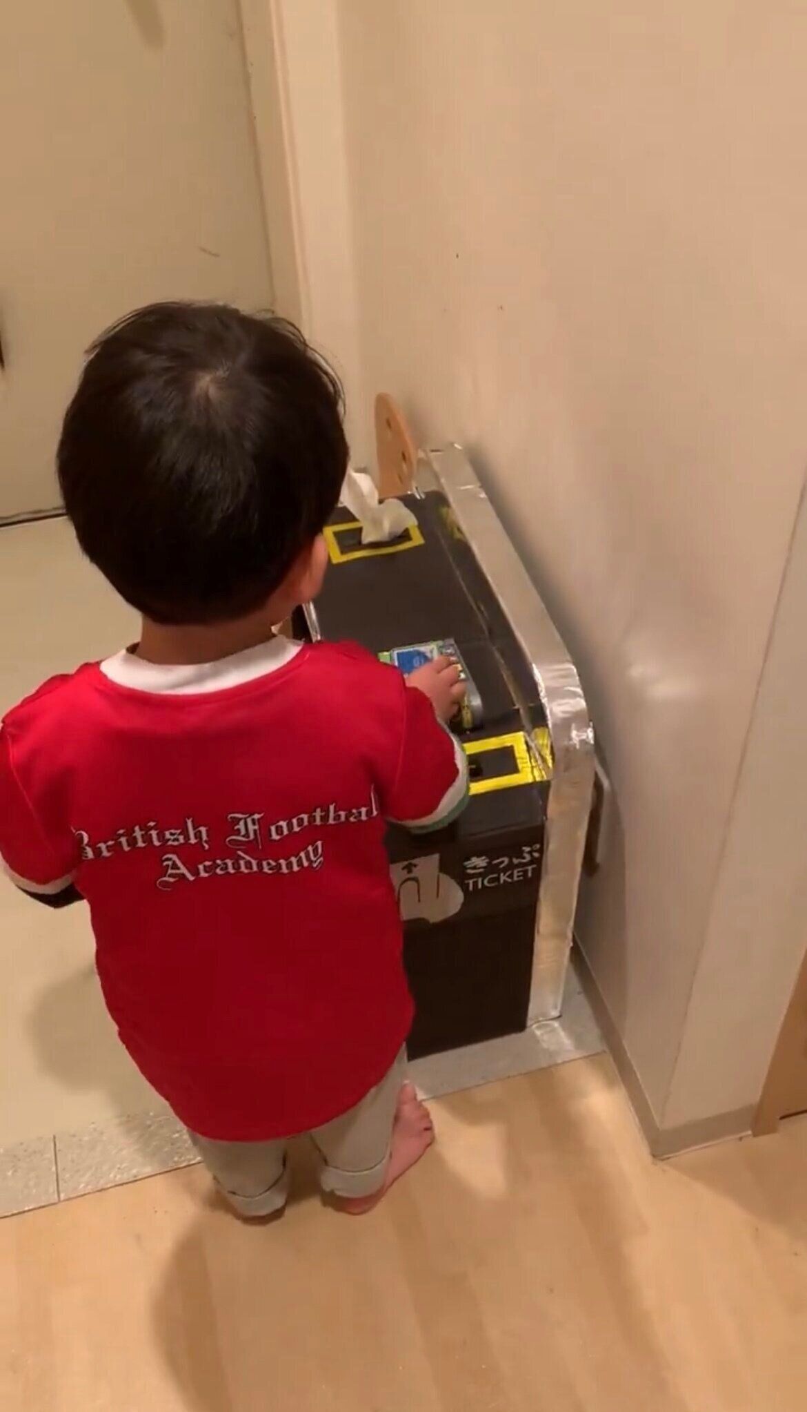 ダンボールの改札を新設してから、小鉄の息子が速攻準備して保育園行けるようになって嬉しい✨ pic.twitter.com/LXNWjrA8Gx