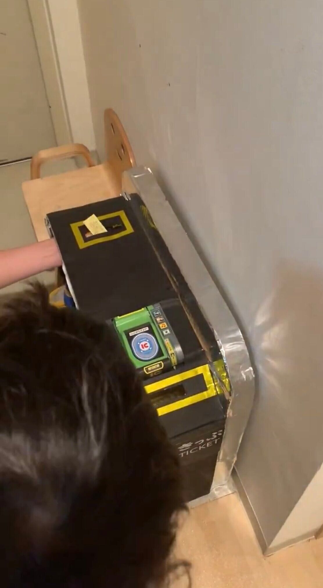 息子さんが手前の黄色い枠に切符を入れると……?