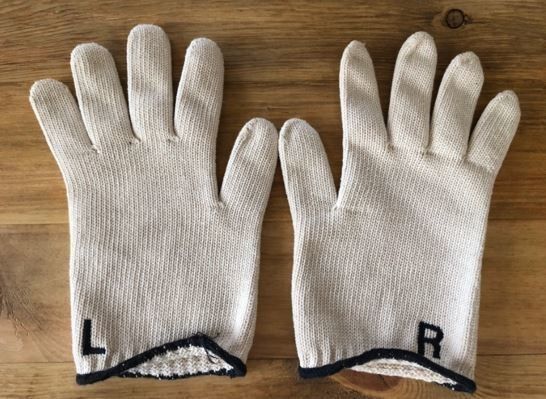 美味しい焼き菓子の書籍をたくさん出版されている星谷さん。教室やアトリエでも不定期で焼き菓子の販売もされています。星谷さんが焼き菓子作りをするときに、オーブンからお菓子を出す作業に欠かせないのが、グローブ型のこのキッチンミトン。「もう、これがないとお菓子を焼けないっ!」と星谷さん。グローブ型だから、指も動かせてとても使いやすいのが特徴です。熱を通しにくく、しっかり指を動かせる厚さにこだわり職人さんに特注で作っていただいたそう。右手と左手の刺繍もとってもCUTEです。