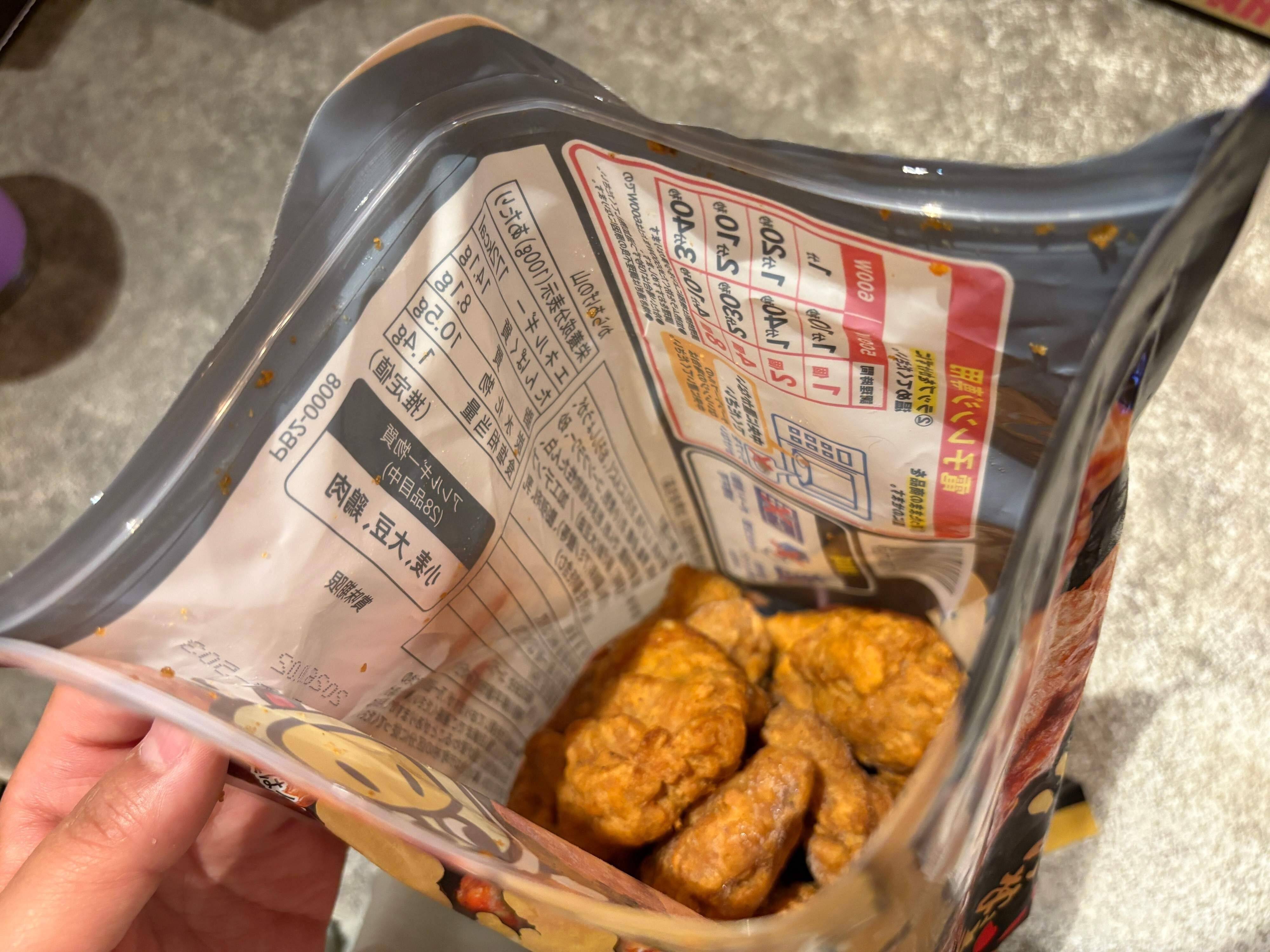 袋にはジッパーがついているので、使うだけ取り出せて保存にも便利です。すでに揚げ調理済みなので、電子レンジであたためるだけですぐに食べられる手軽さも魅力です。