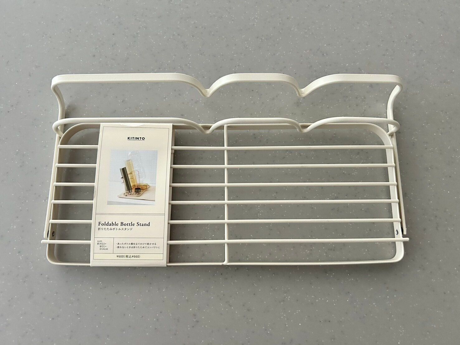 今回ご紹介するのは、3COINSの「折りたたみボトルスタンド」です。価格は660円。 サイズは幅13×縦31×高さ14cmとなっています。