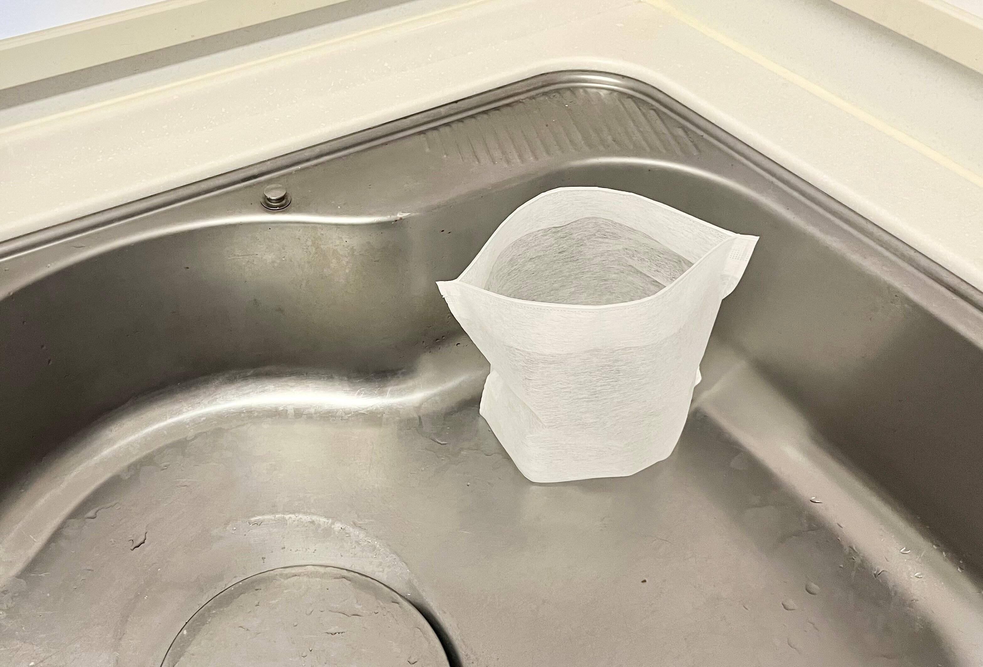 そして、こちらの商品の魅力といったら、とにかく後片付けが楽だということ!三角コーナーだと使い終わった後の掃除が面倒ですが、使い捨ての商品なので、ゴミが溜まったらポイっと捨てるだけでOK。