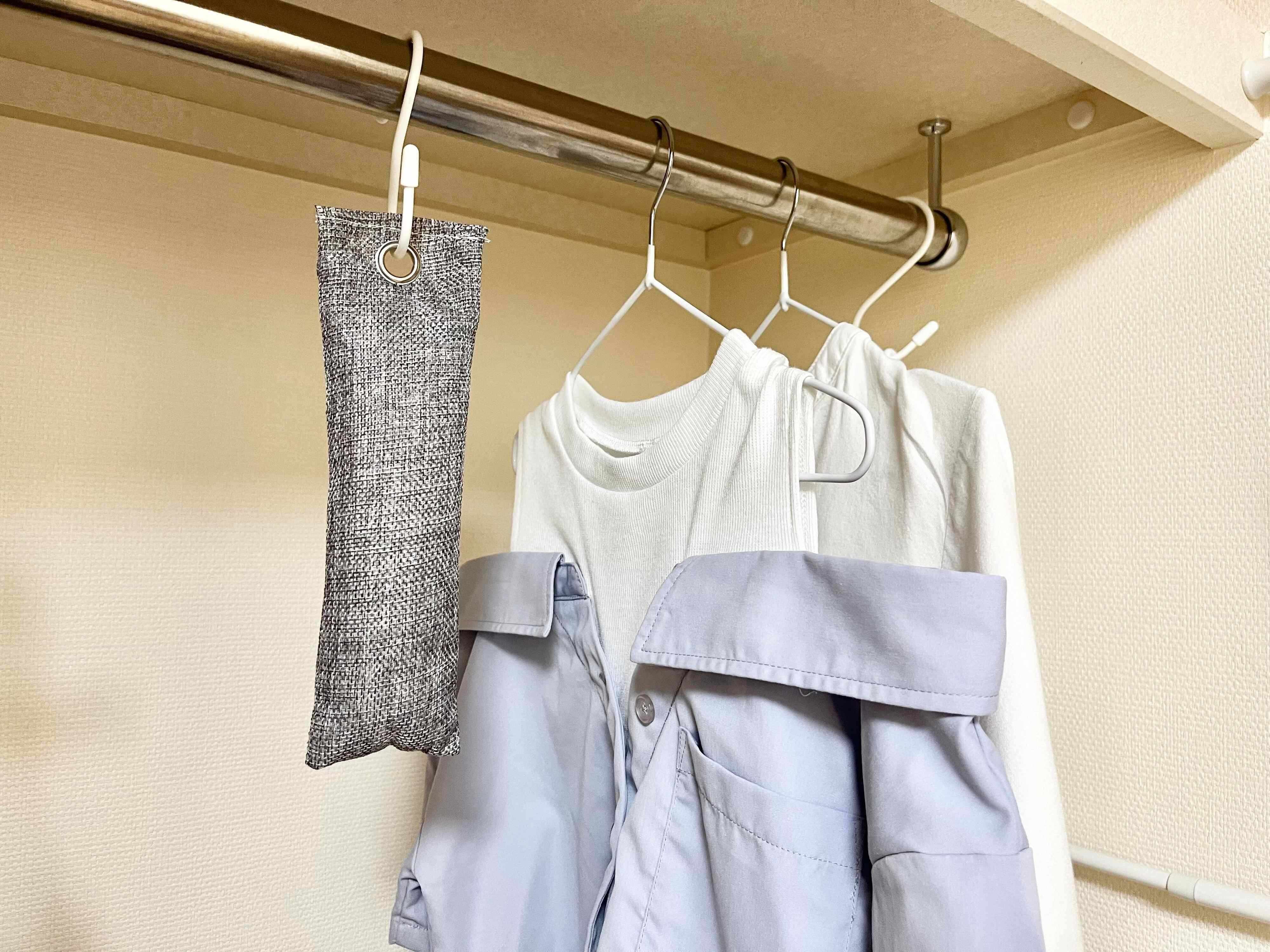 セリアの「竹炭消臭除湿バッグ」は、ついパケ買いをしたくなるほどオシャレな消臭除湿対策グッズです。