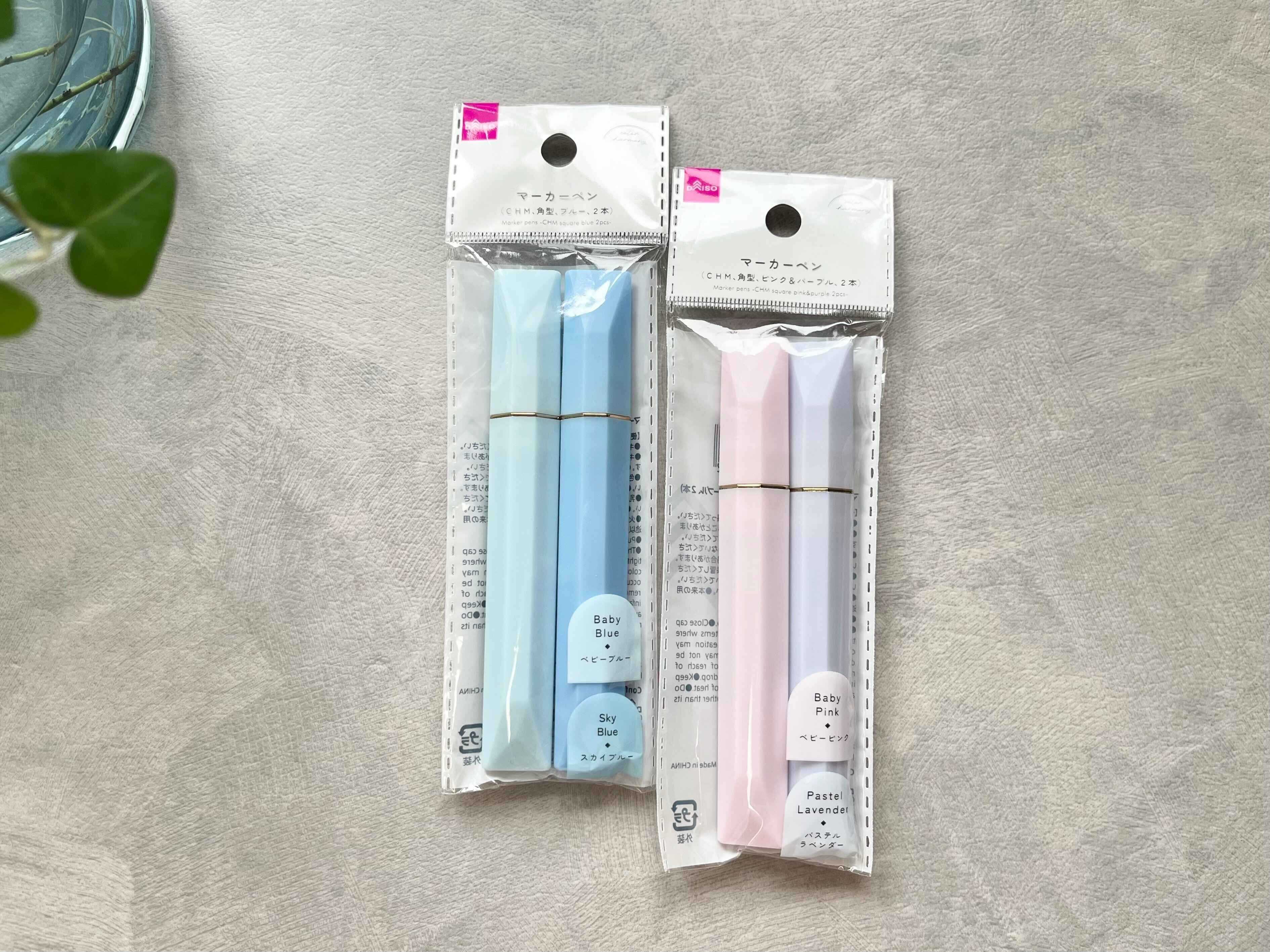 こちらも水性インクのマーカーで、右側はベビーピンク・パステルラベンダ、左側はベビーブルー・スカイブルーの2色入り。