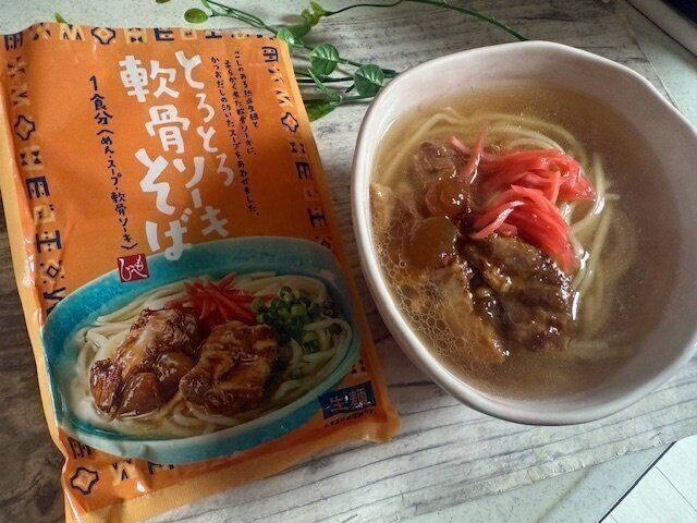 こちらです。【カルディ】「とろとろ軟骨ソーキそば」1食分