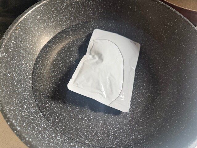 この白い袋の中身が軟骨ソーキ。袋のまま湯せんで温めるか中身を出してレンジで温めておきます。