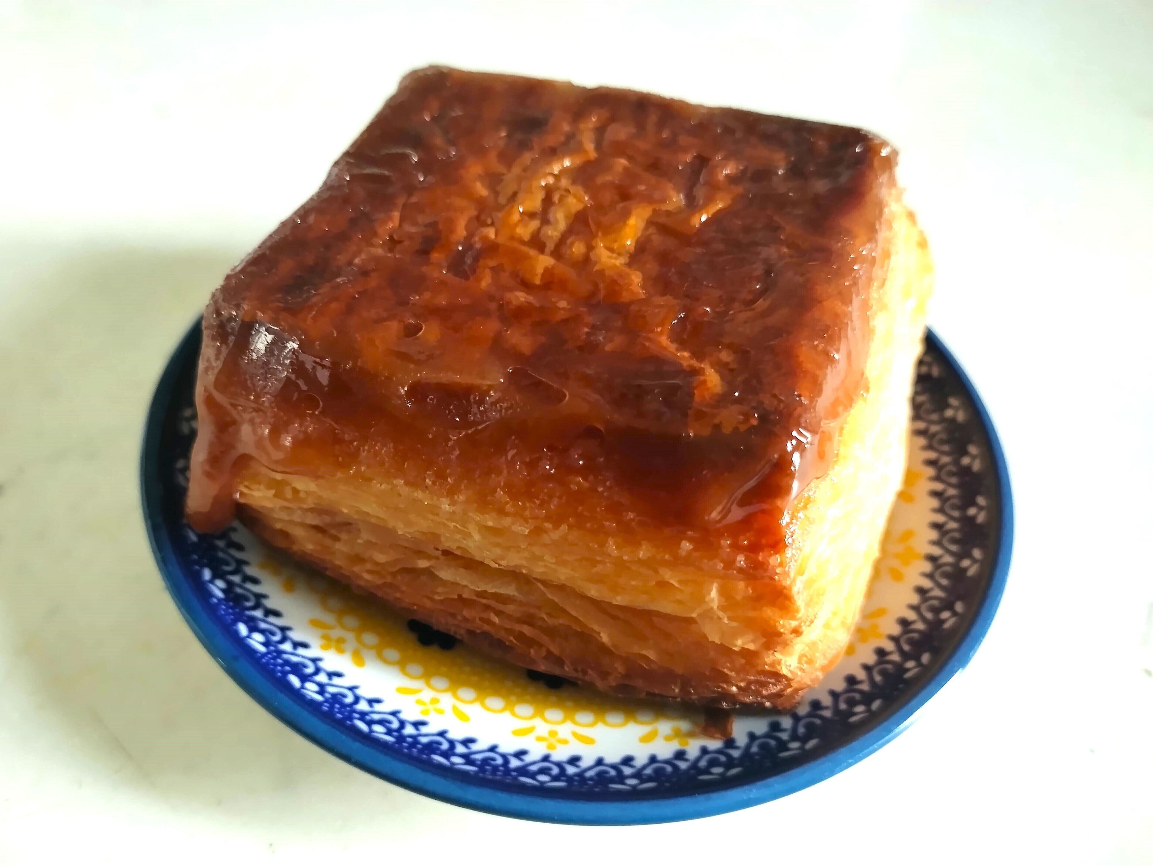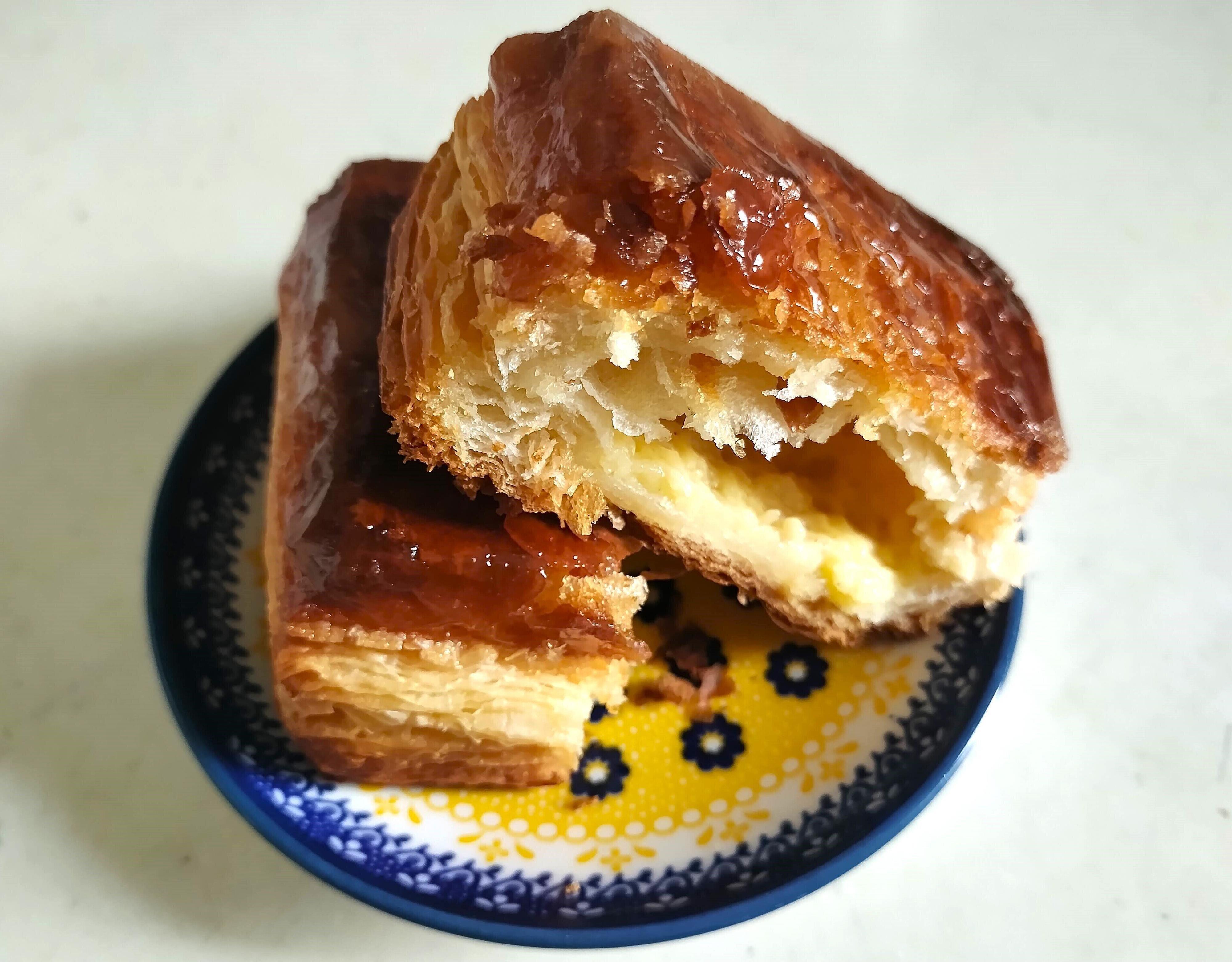 キャラメリゼ部分とカスタードクリームを一緒に食べると、プリンのような味わいです。ただクリームの存在感はそれほど強くなく、少し甘じょっぱい濃厚なキャラメルとザクザク食感が魅力のデニッシュです。