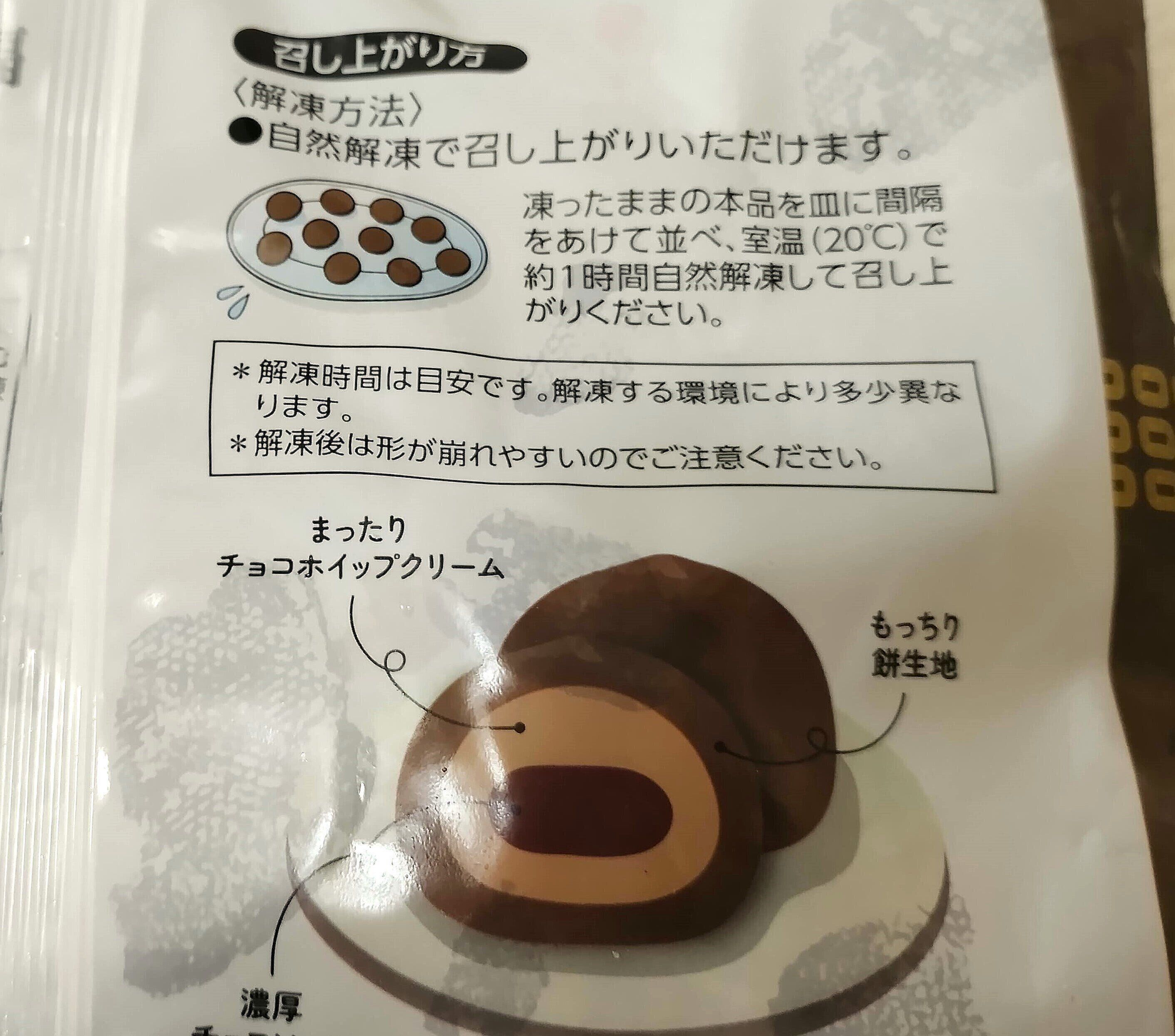 全解凍でホイップのまったり感を存分に味わうのも最高ですが、半解凍で食べると、まるでチョコ味の餅アイスのよう…お好きな解凍具合を見つけて楽しんでみてくださいね。