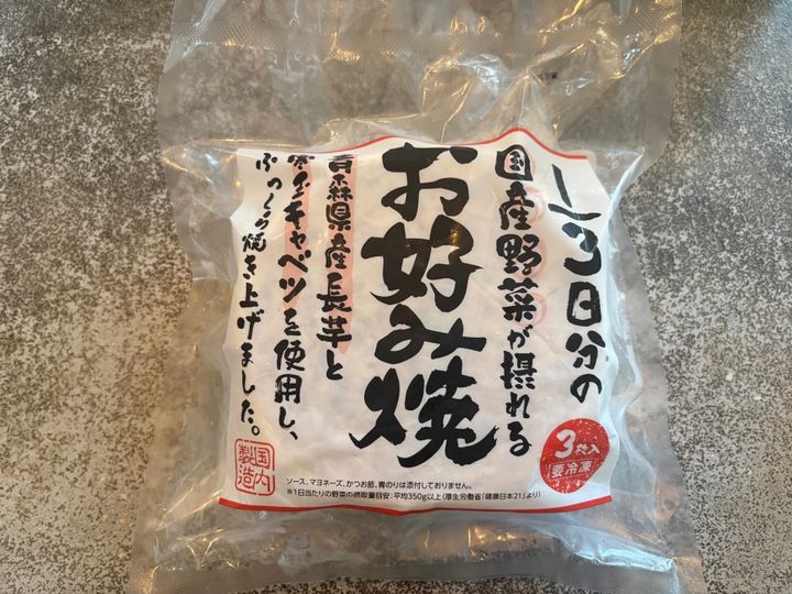 直径15cmほどのお好み焼きが3枚入っており、1枚あたりの価格は約251円と外食するより断然お得です。