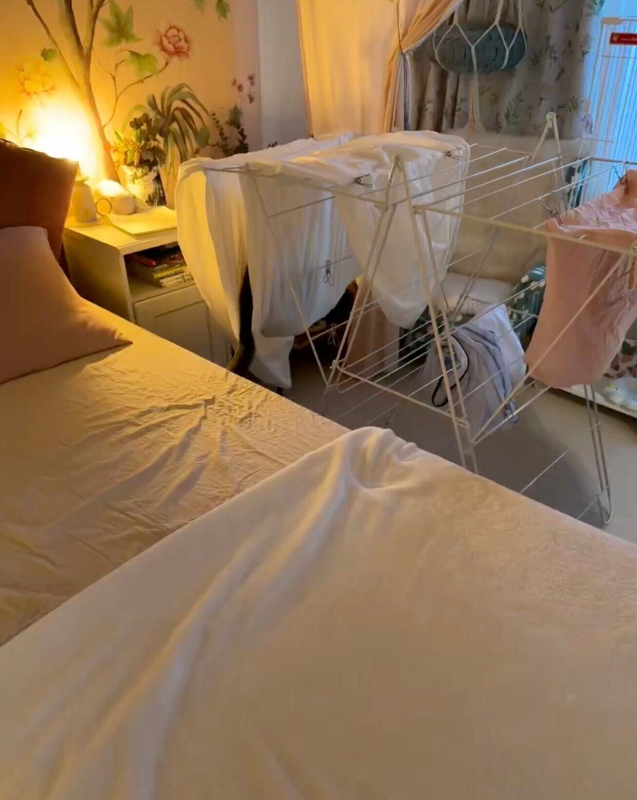 動画の冒頭、寝室に干されたシーツが映し出されます。