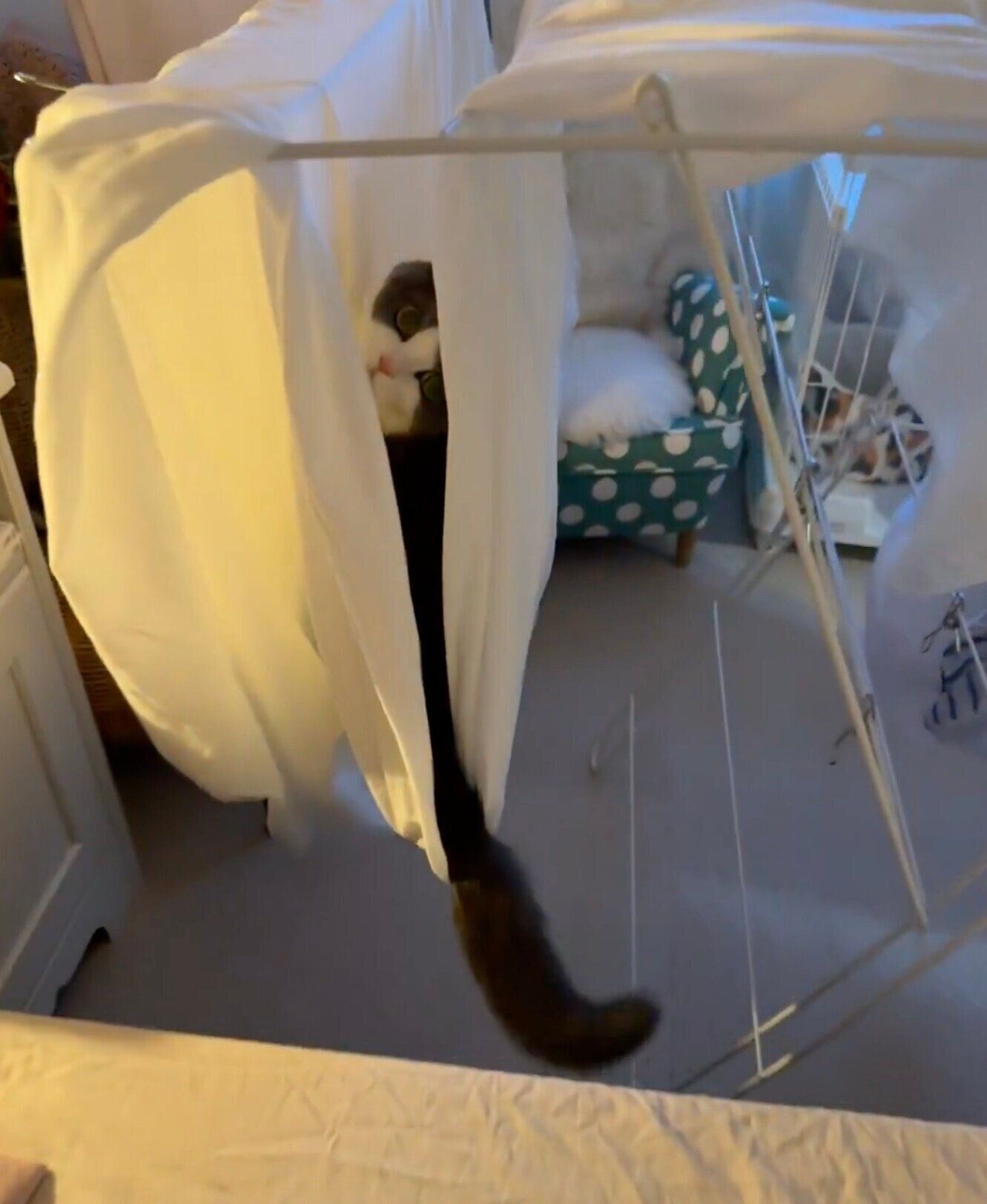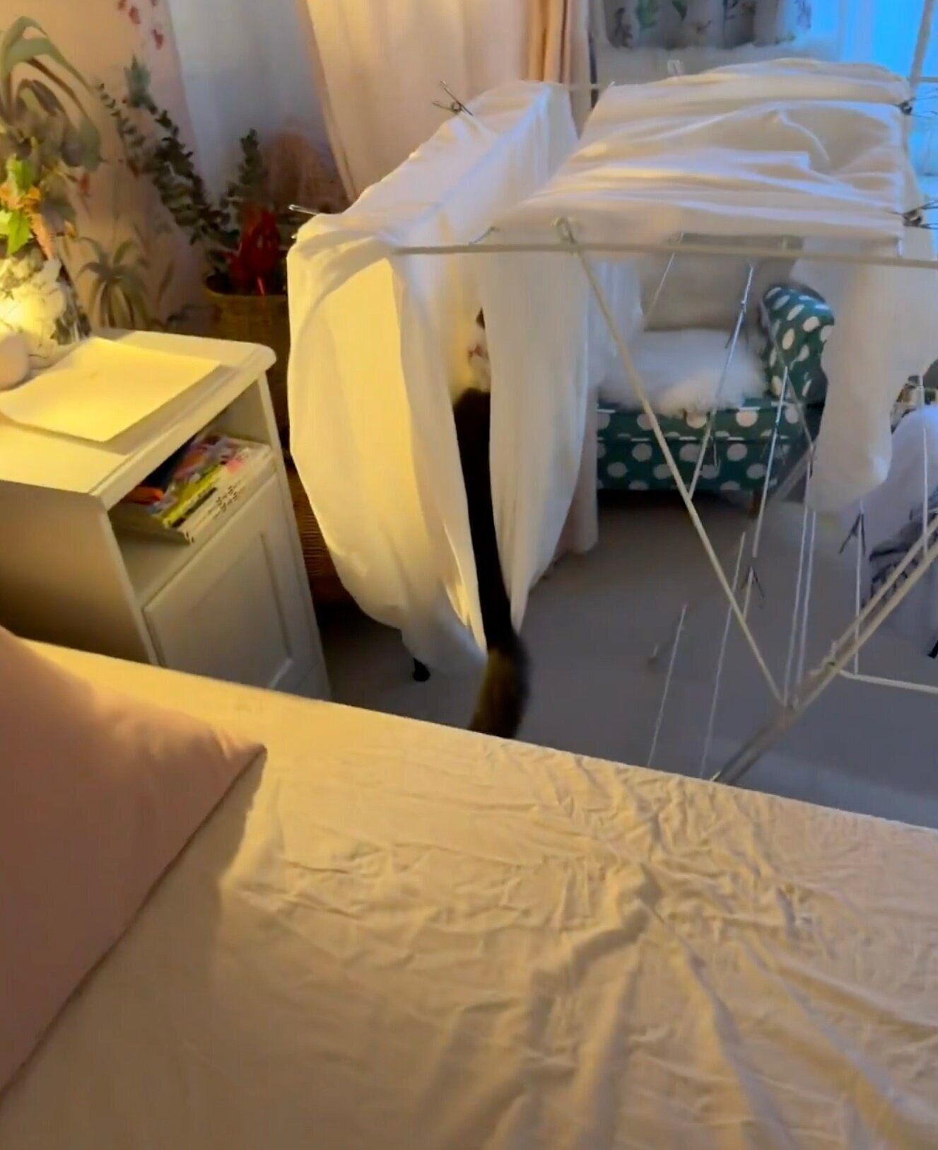 シーツを干すといつも遊ばれるから、床につかないように干したらハンモックになってた🙂 pic.twitter.com/nd54VANFei