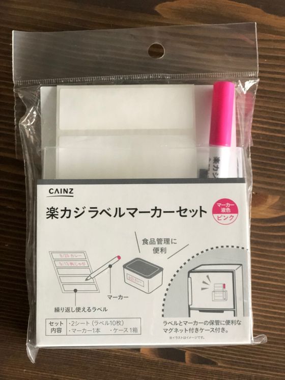 働くママが、冷蔵庫でかかせない!とオススメするカインズホームの「楽カジ ラベルマーカーセット」。ご存知ですか?耐水性抜群のラベルでと、水では落ちないけれど蛇口のお湯&中性洗剤でスルッと落ちる特殊インクのペンが抜群に活躍しています。