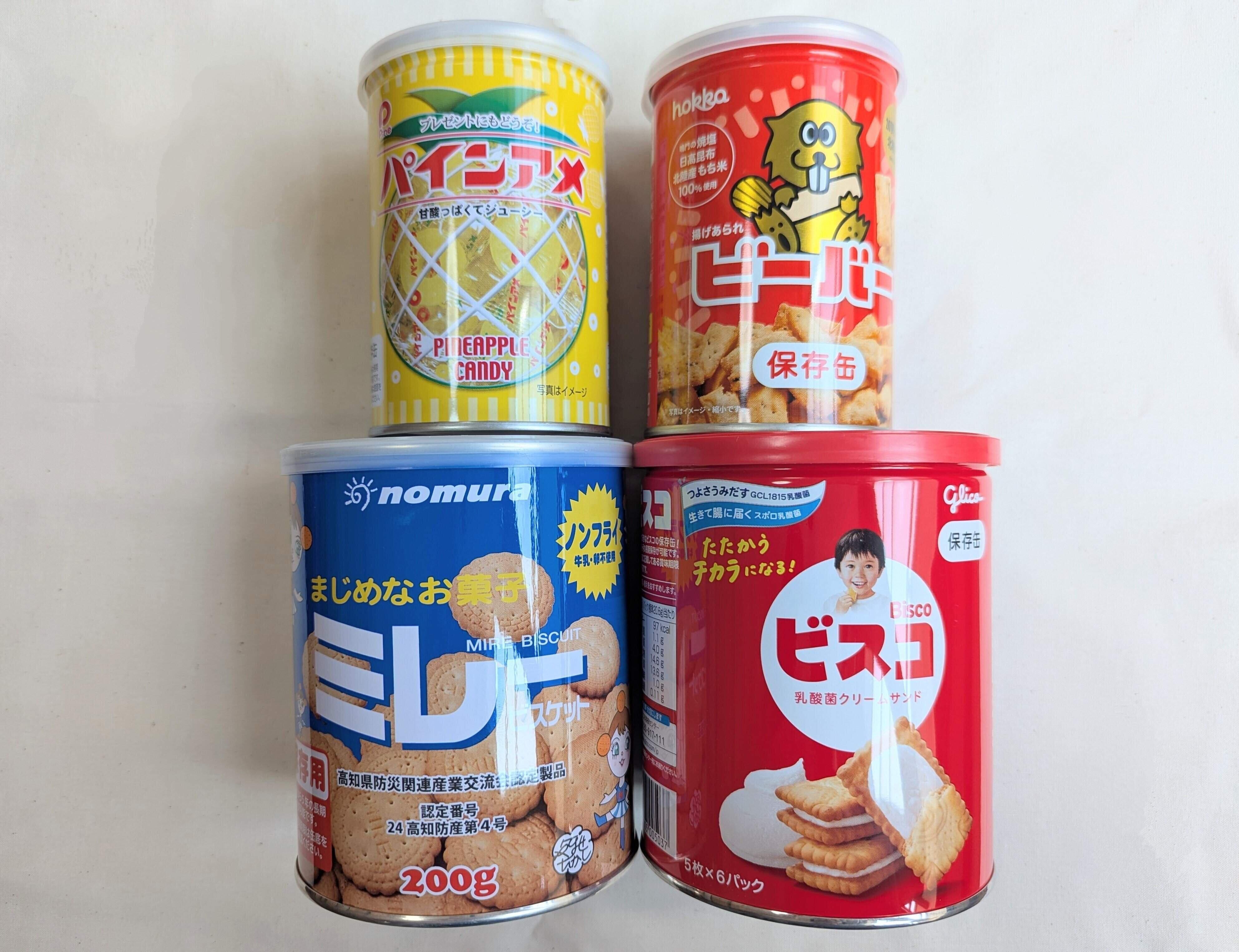 ビスコやミレービスケット、パインアメなどおなじみのお菓子にも、賞味期限が約5年の保存缶があるのをご存知ですか。味は通常タイプと変わらないので、いつもの感覚で安心して食べられますよ。