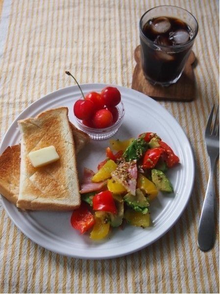 プレートに、ホットサラダとトースト、フルーツを添えれば、完成。