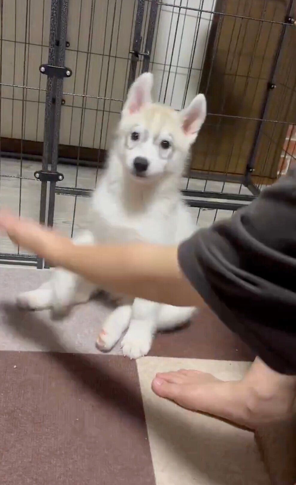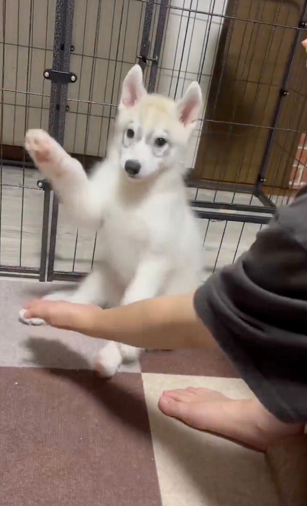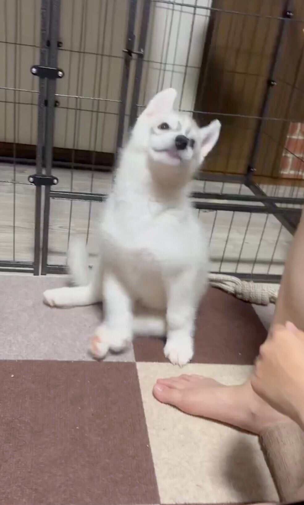 両手でお手をするのも、バランスをくずしてしまう姿も、とっても愛らしいですね!
