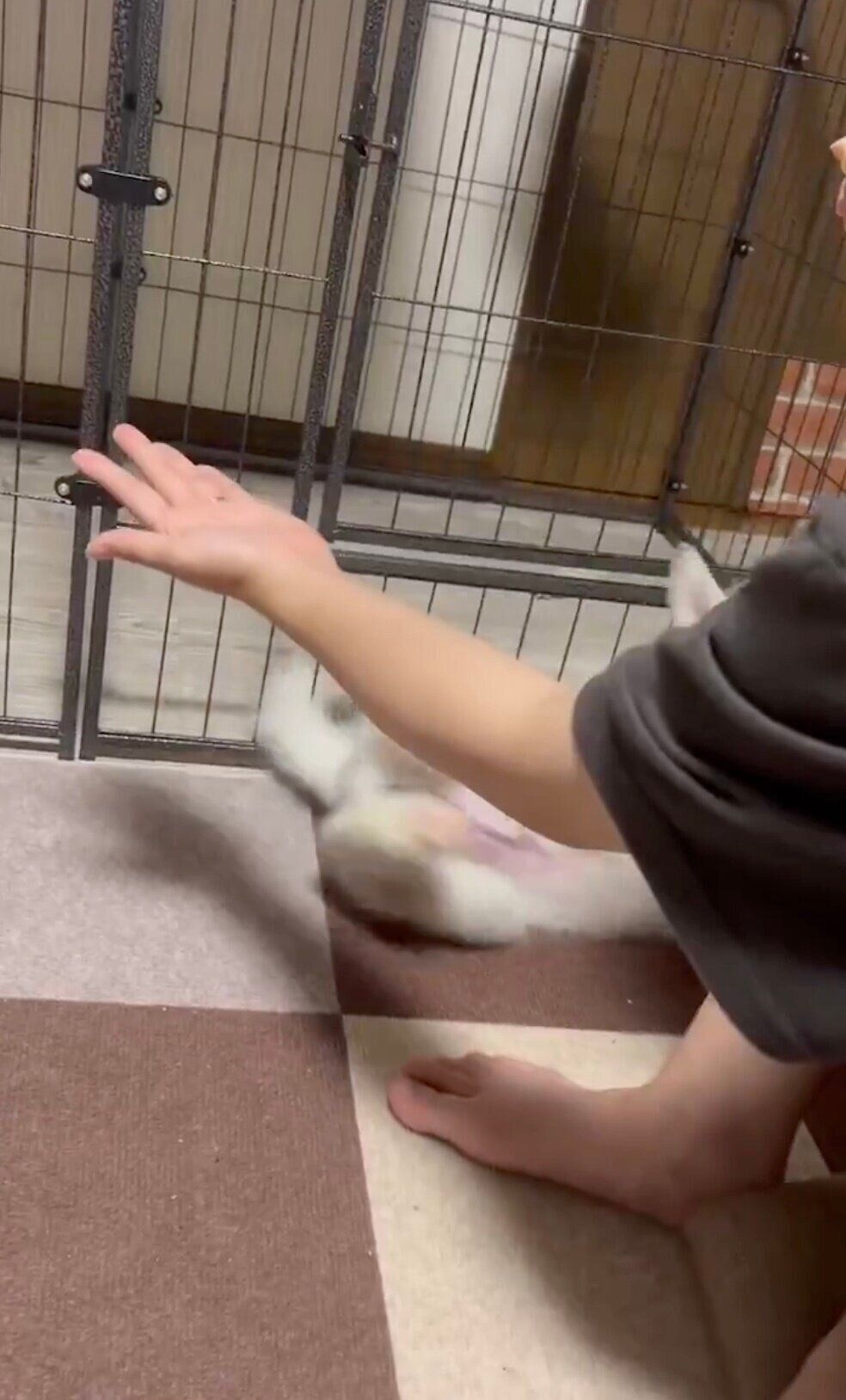 「『お手』自体は、この動画の前にすでに習得できていたので、最初はなんで倒れたのかわからず、笑っていました。後に動画を見返すと座り方のせいだとわかって、また笑ってしまいました」