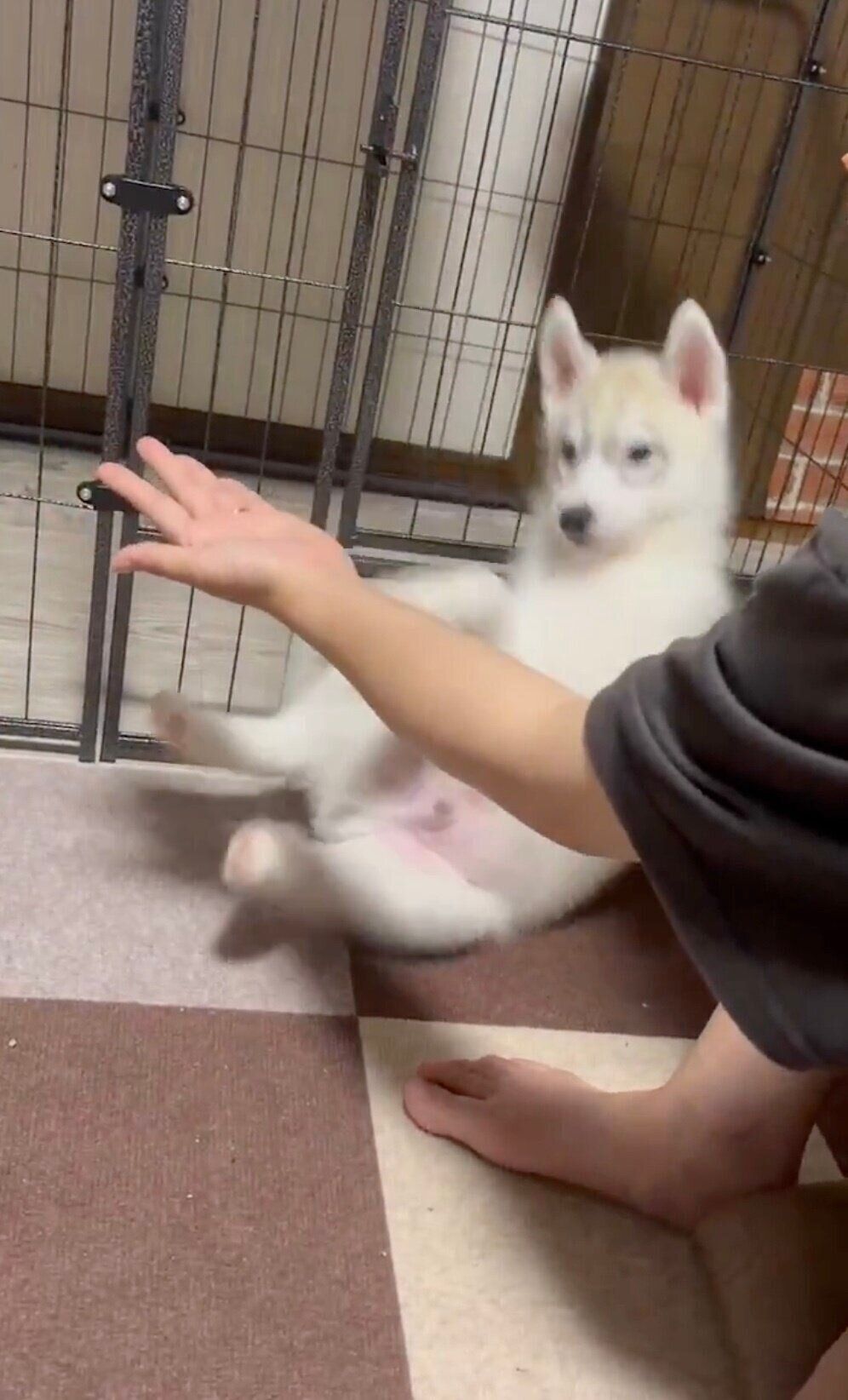 「生後2カ月のころ、初めてお手ができた日にうれしくて何度もさせていたときの動画になります。きちんと座っていなかったので、両手を上げるとバランスが取れなくなってしまったようです」