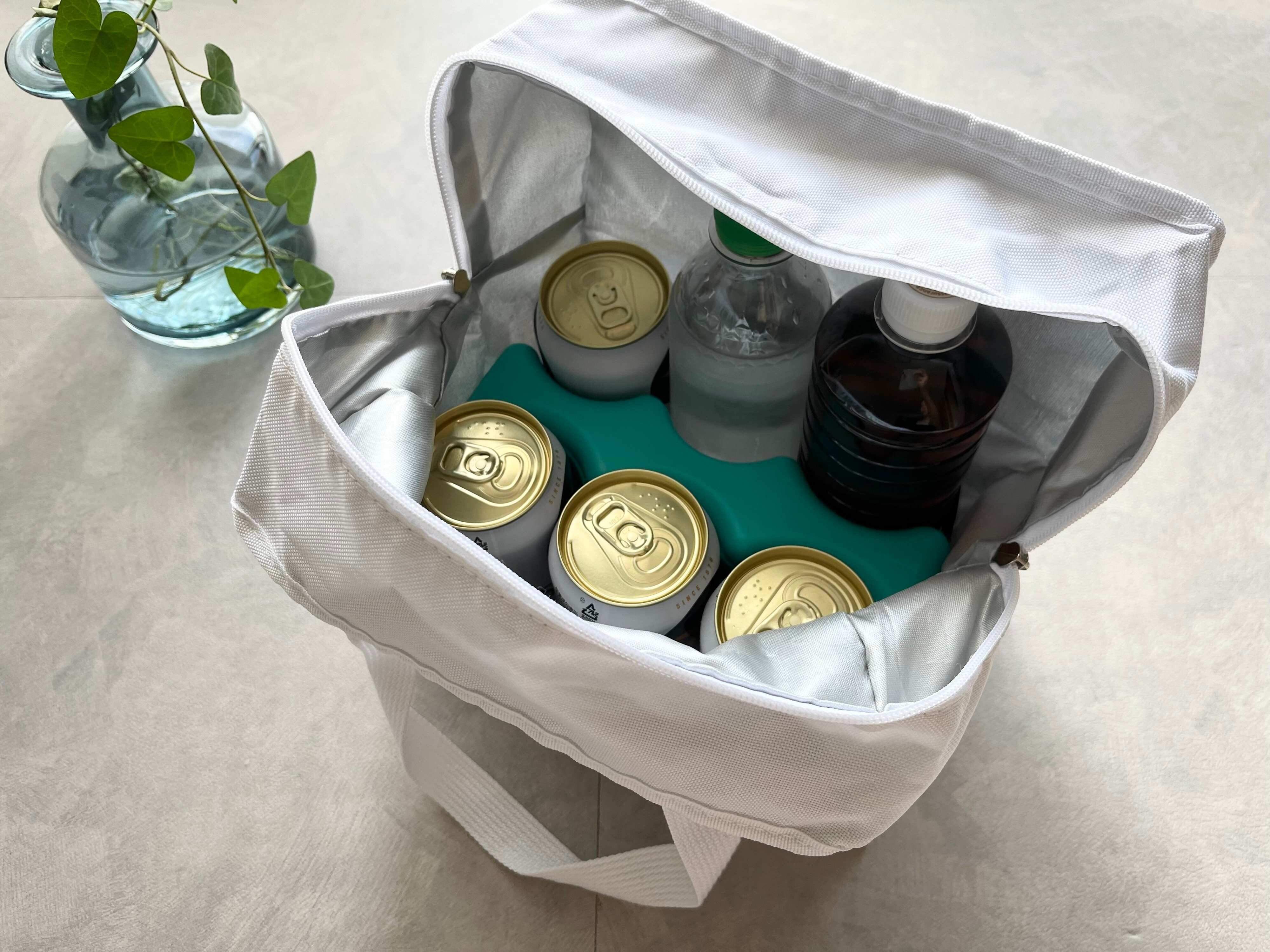 気になる保冷効果は、冷凍庫で約8時間冷やしてから使えば、500mlの缶のドリンクを6本まで約4時間冷やすことができます。