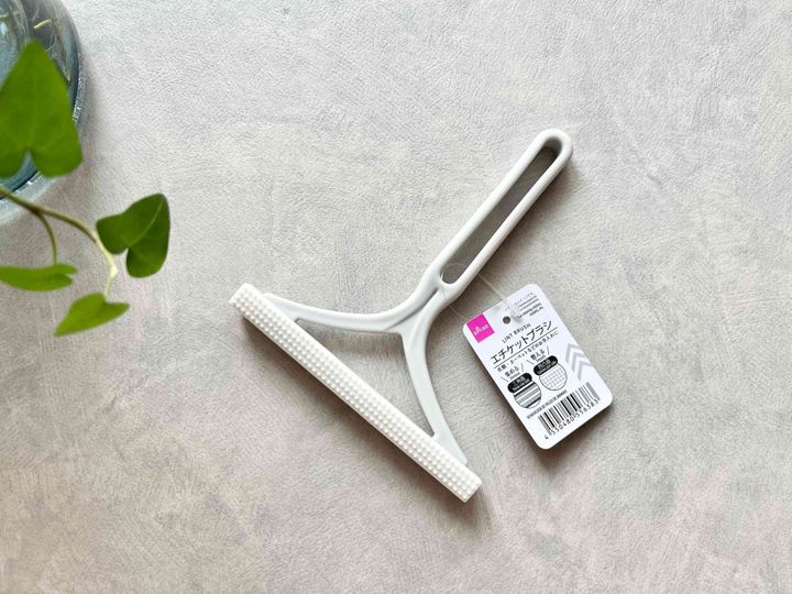 ダイソーの「エチケットブラシ」を使えば、ニットの毛玉取りのハードルがグーンと下がります。刃が付いていないからニットに穴があかないし、ラグの毛並みだって整えられる。それに使い終わったら丸洗いできるから衛生的!まさに、お値段以上の優秀アイテムですよね?