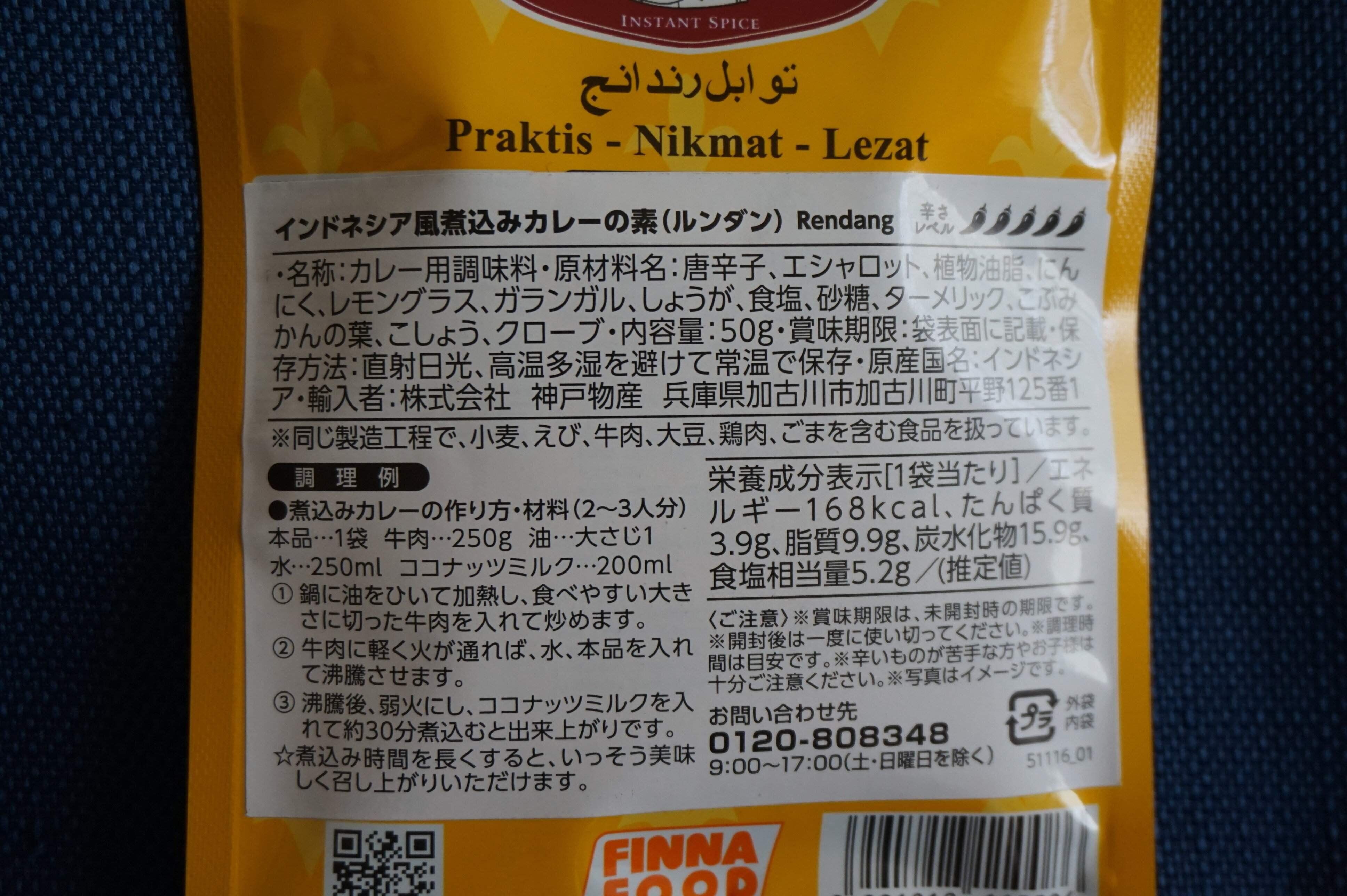 業務スーパーでFINNAというインドネシアのインスタント調味料を見つけました。いくつか種類があったのですが、インドネシア版チャーハン「ナシゴレン」と、世界一おいしい料理として認定された「ルンダン」の2種類を購入しました。