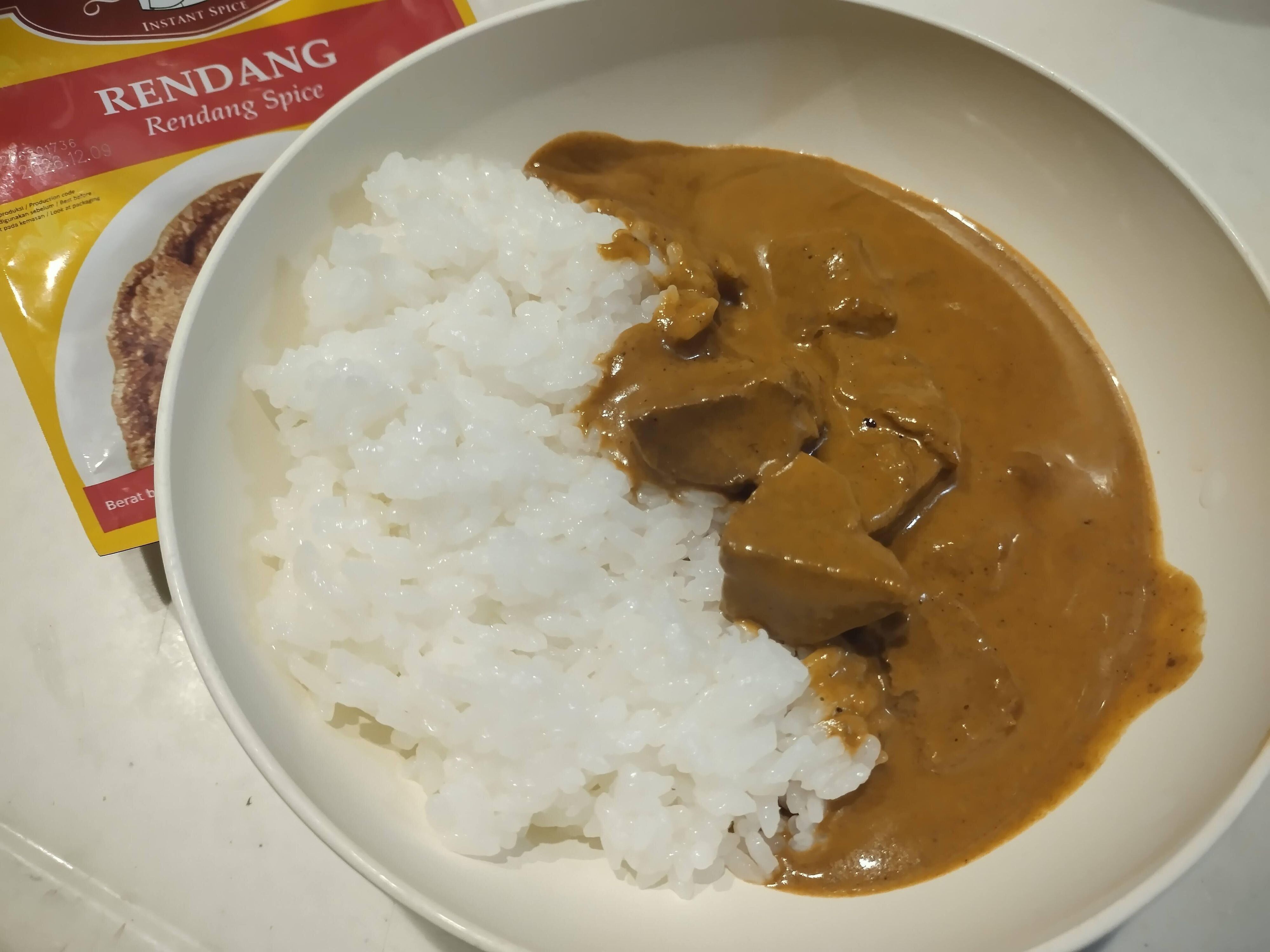味はかなりおいしいのですが、夫の地方でよく食べられているルンダンとは違った雰囲気かなと思います。インドネシアはとても広いので、同じ料理でも地域によって微妙に違っていたりします。夫の出身地であるジャワ島ではルンダンの水分はかなり少な目なのですが、地域によっては多めのところもあるそうです。