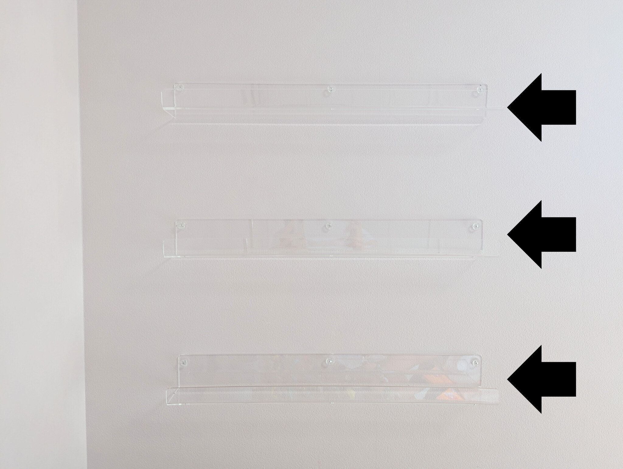 さらに、本体が透明で壁の色が透けるため、視覚的な重さを感じにくいのも特徴です。棚が主張せず、飾りが際立つのもうれしい効果。