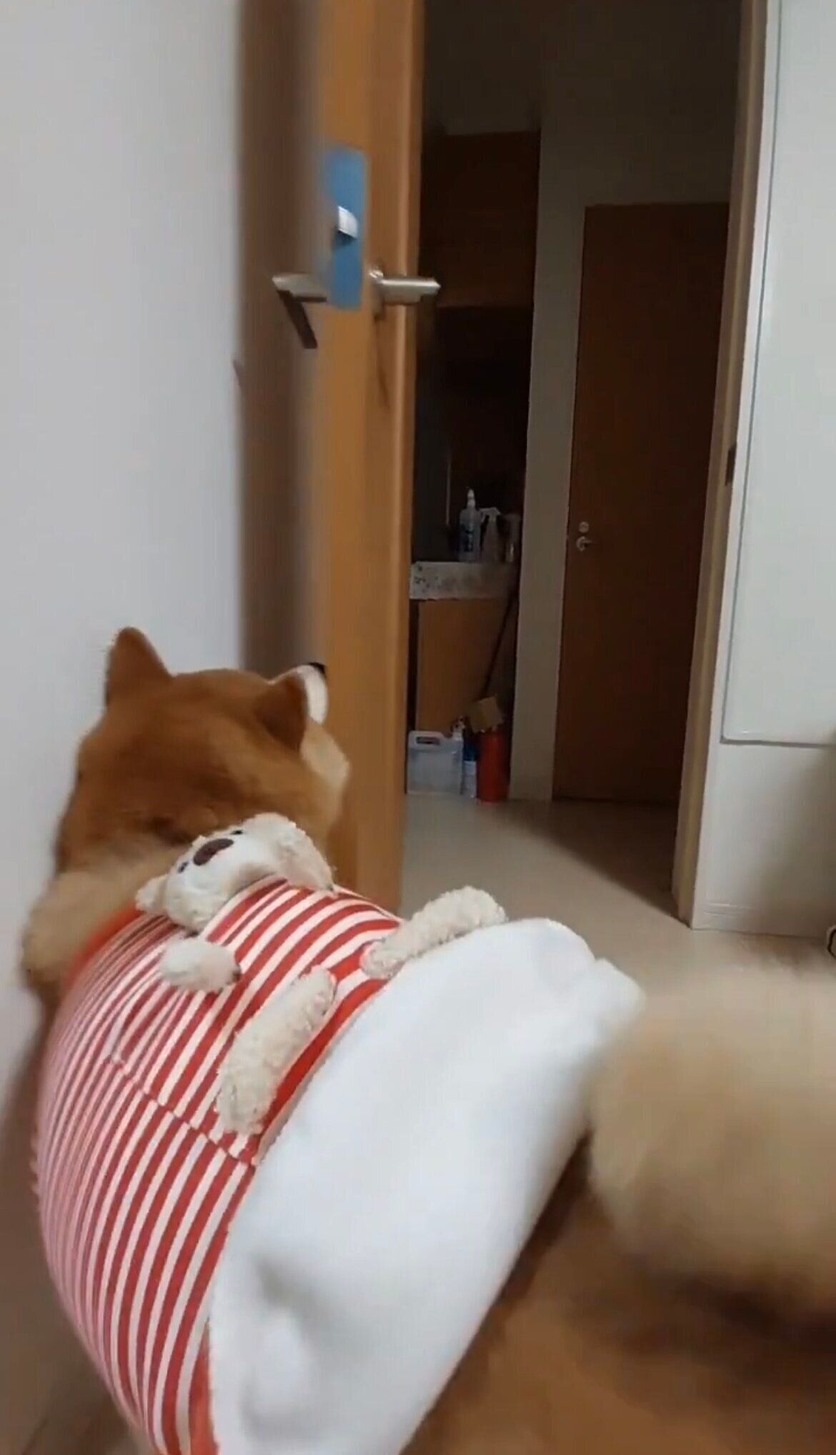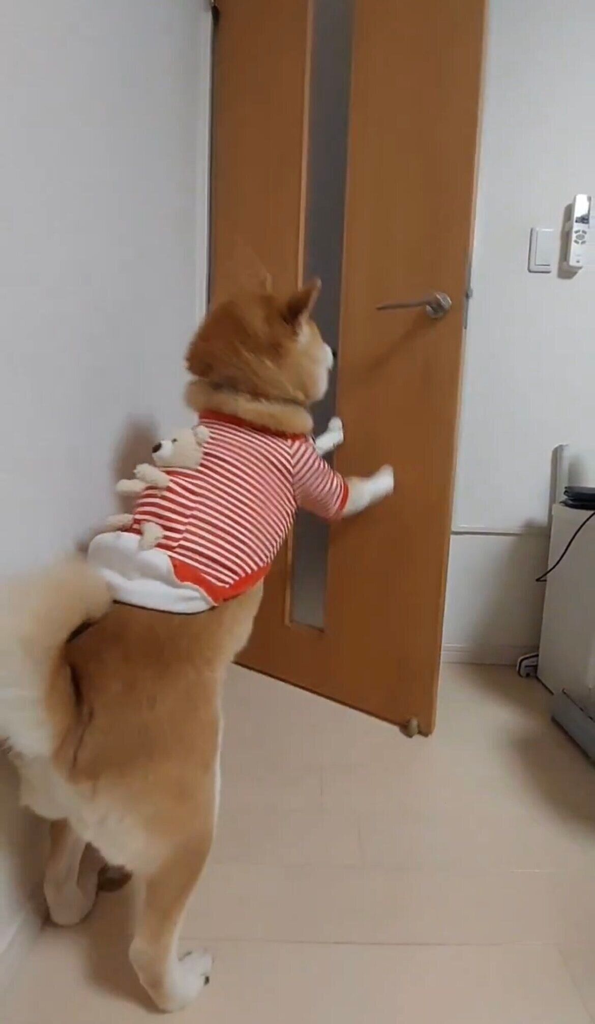 その後立ち上がり、前脚を使って扉をバタンと閉めました。
