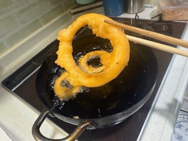 160℃~170℃の油で揚げ色がつくまで揚げる。