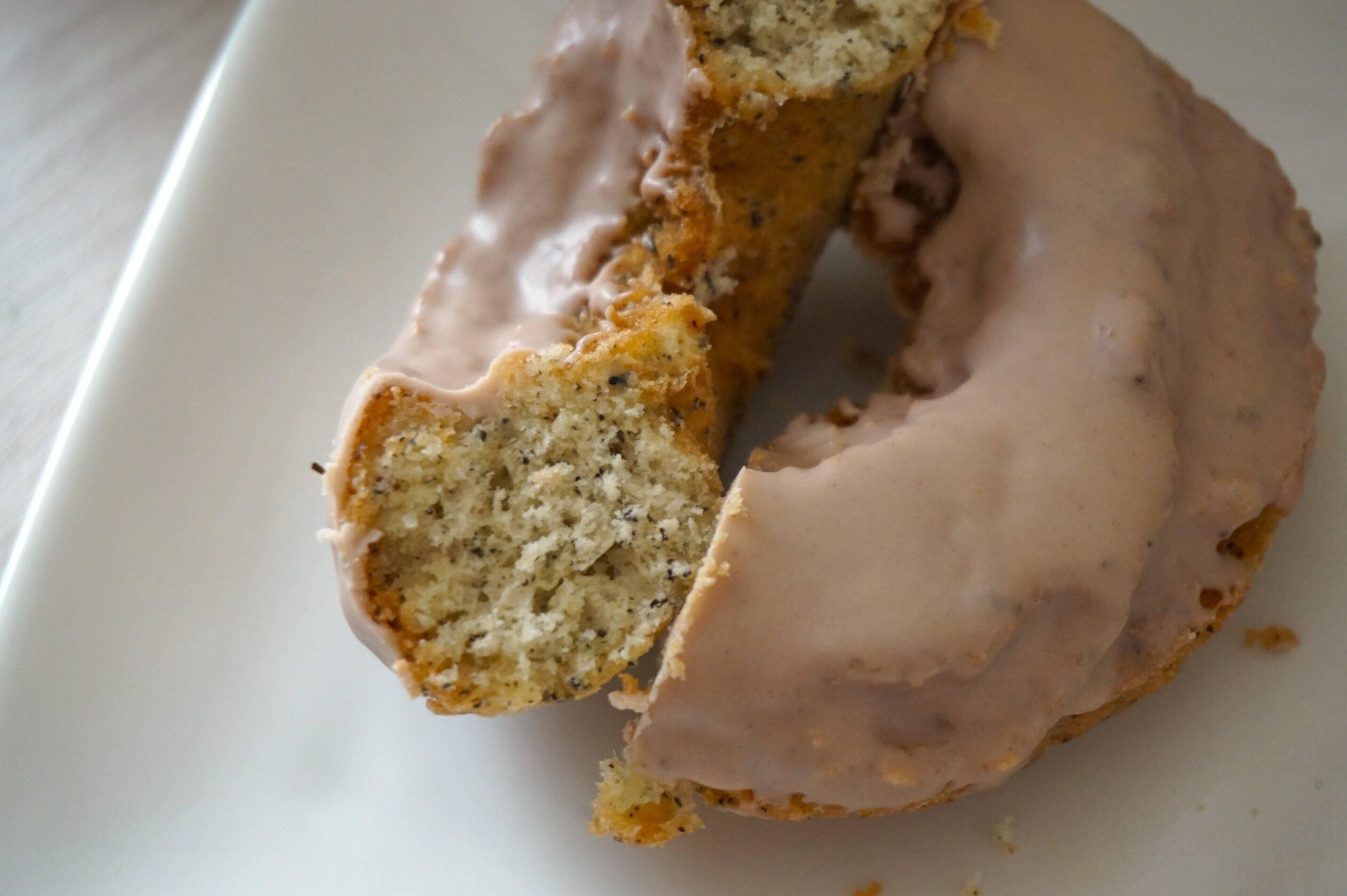 割ってみたところ、生地にもたくさんアールグレイ茶葉が入っています。紅茶好きなかたも満足できそうな香り高いドーナッツです。