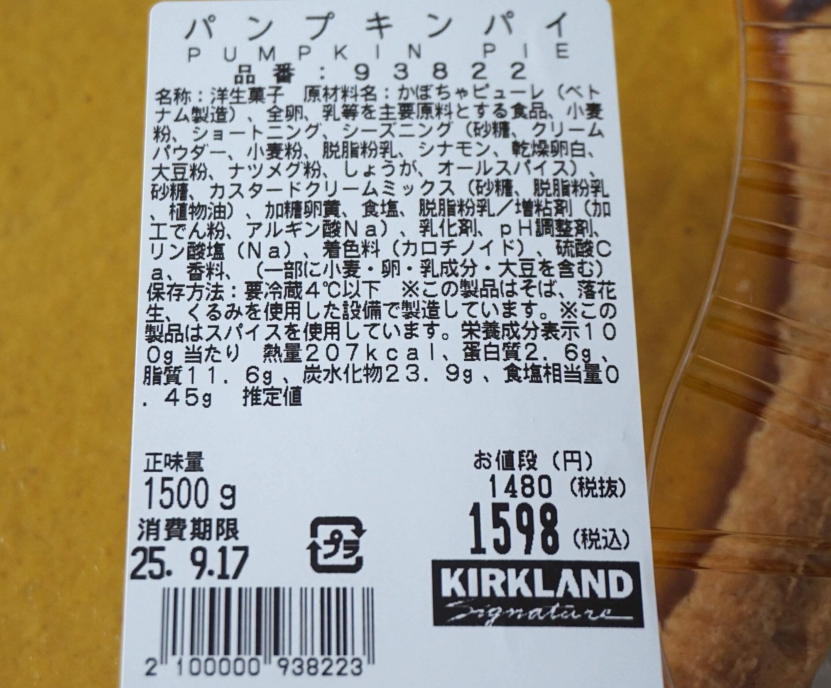 原材料を見ると、シナモンだけでなく、ナツメグやオールスパイス、しょうがなども入っています。海外のサイトでパンプキンパイのレシピを見ていると、パンプキンパイにはいつもスパイスが入っているようなので、海外では定番なのでしょう。