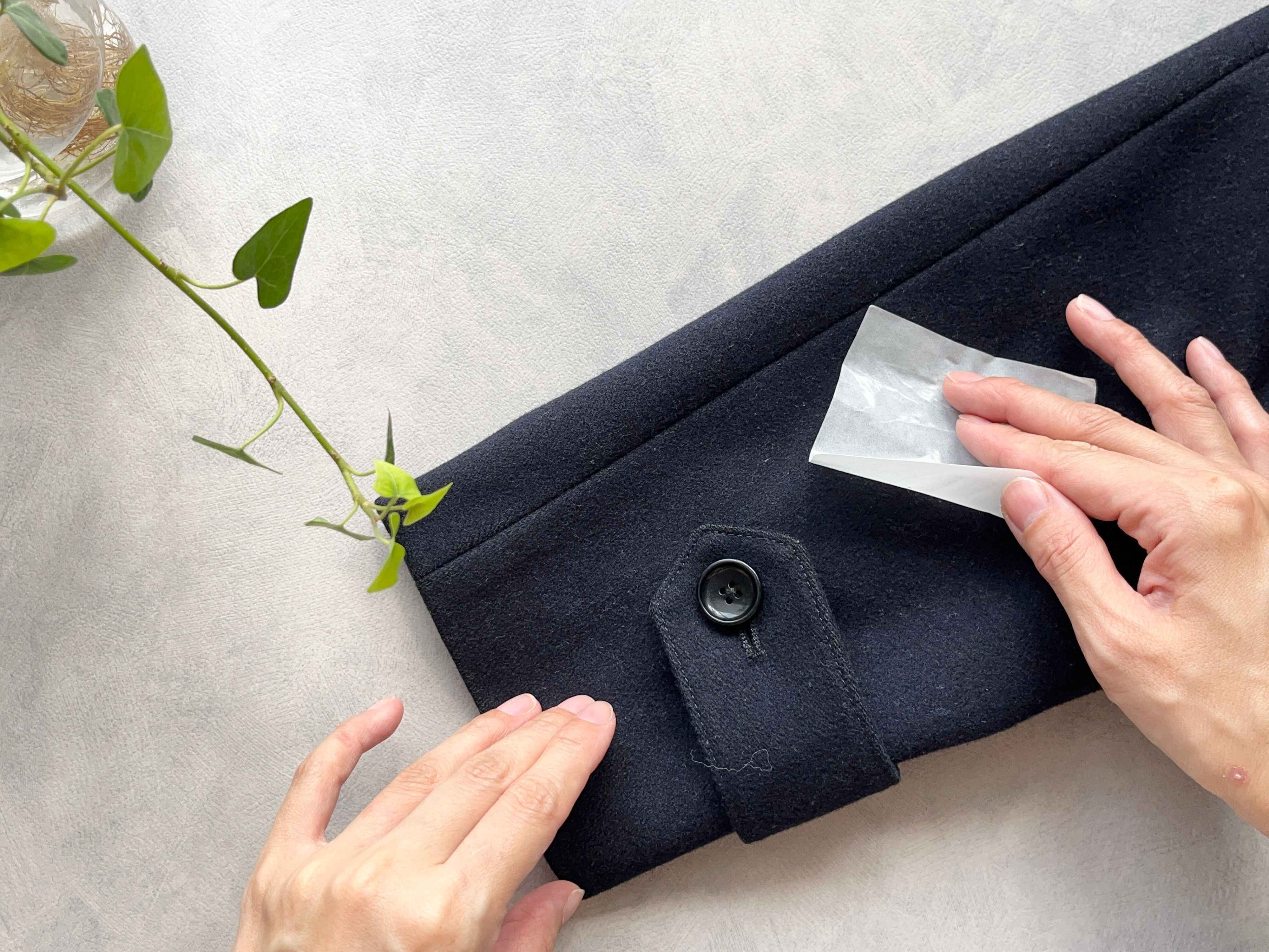 シートの裏側が粘着面になっているので、ペタペタと衣類にくっつけると手軽にホコリや糸くずなどを取ることができます。