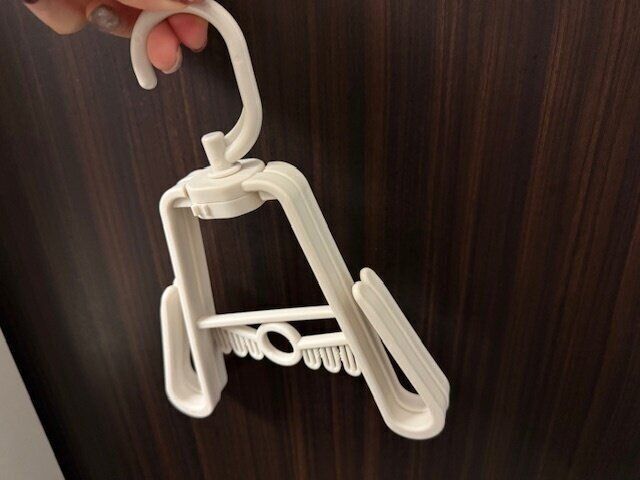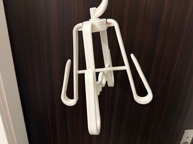 これが本当に便利なんです。省スペースで靴がしっかり乾くだけでなく、使わないときはコンパクトに収納できる優れもの。これまで使っていたのは靴が一足のみでしたが、この「多機能シューズハンガー」は一つで二足の靴が干せるんです!これは嬉しい。